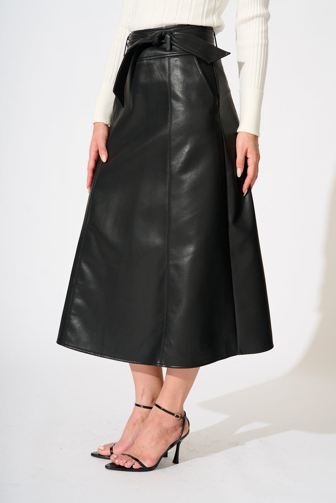 Embrace Midi Skirt in Black Leatherette