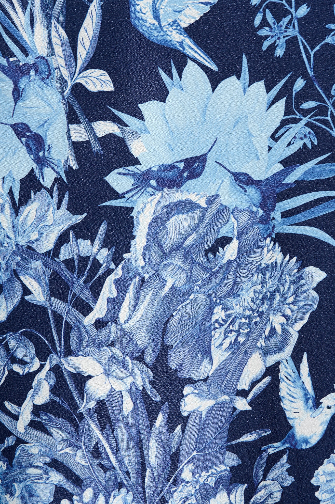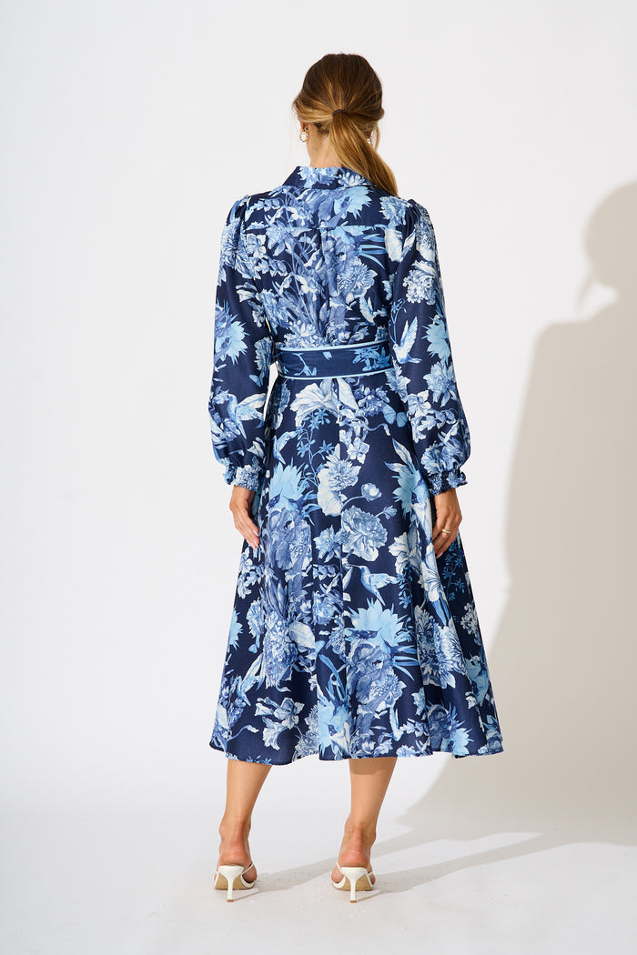 Enchanted Wave Maxi Shirt Dress in Navy with Blue Floral Linen Blend