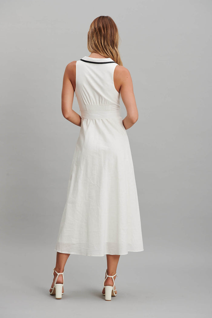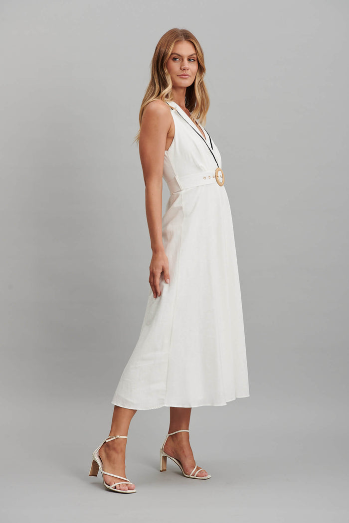 Enchanter Midi Dress In White Linen Cotton