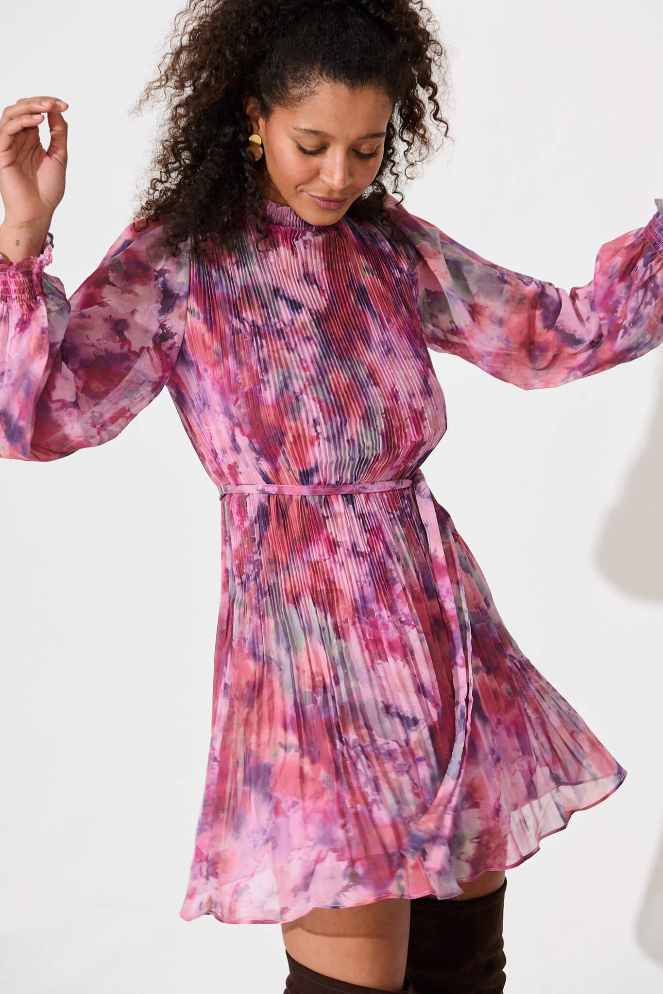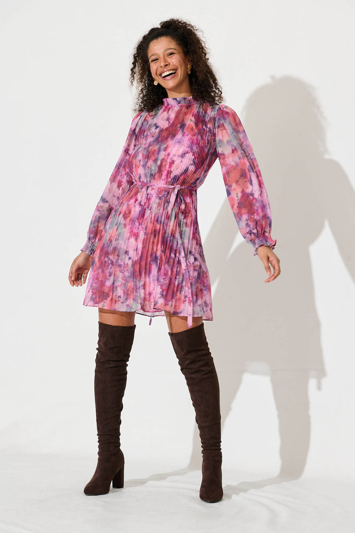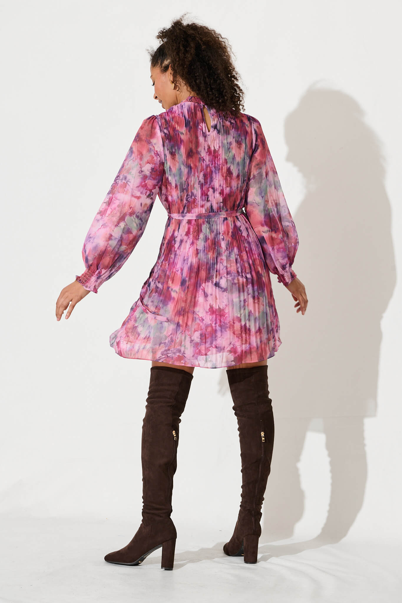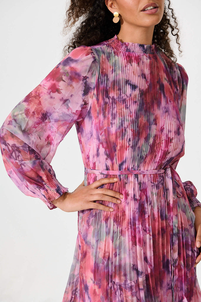 English Rose Dress In Pink Watercolour Floral Chiffon