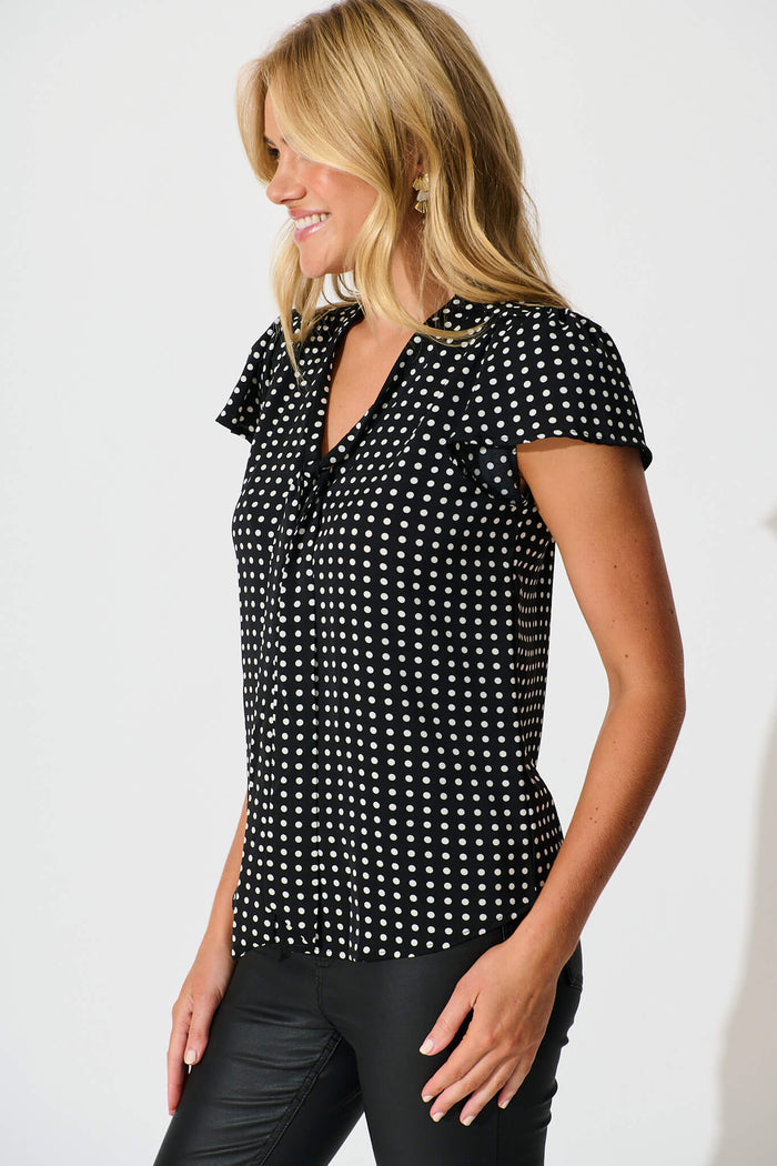 Erin Top in Black with White Polka Dot