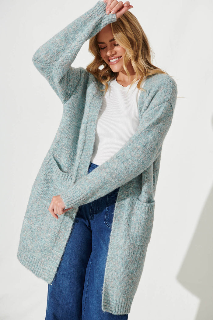 Ersa Knit Cardigan In Dark Teal Marle Wool Blend