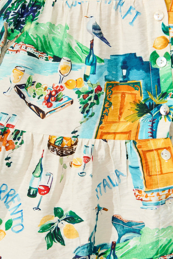 Esmarie Dress in White with Multi Summer Print