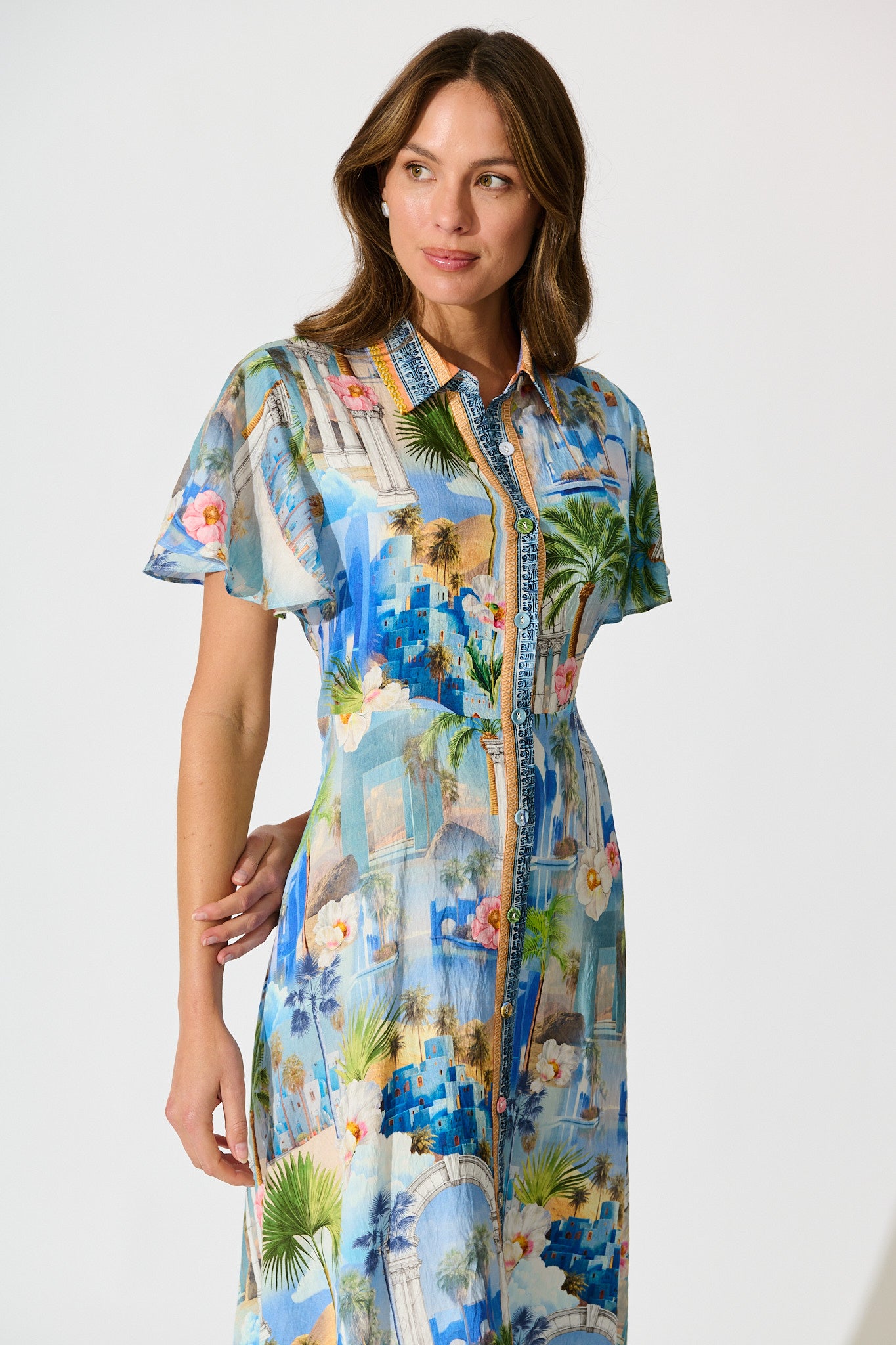 Cool, expressive and endlessly versatile, the Eulalia Midi Dress in Blue Multi Print is perfect for summer gatherings, holiday strolls and casual celebrations. With its bold print and breezy shape, it’s a true statement-maker you’ll wear on repeat.