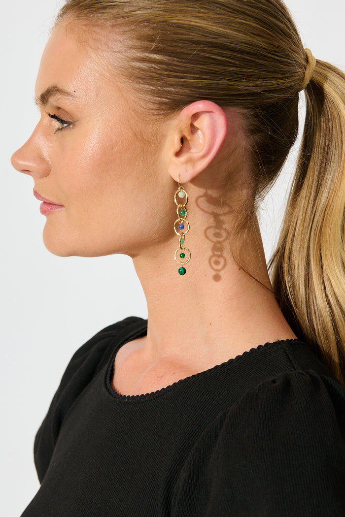 Eva Drop Earrings in Multi Green