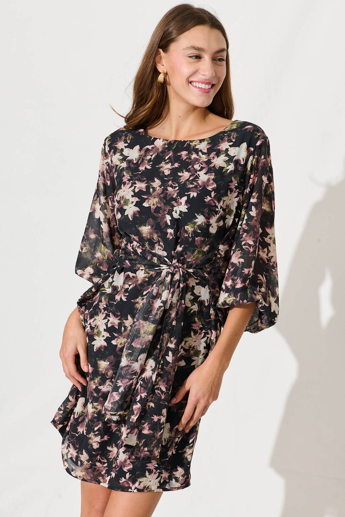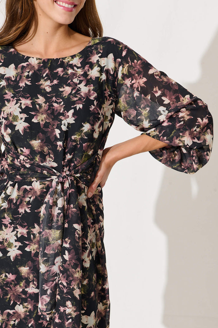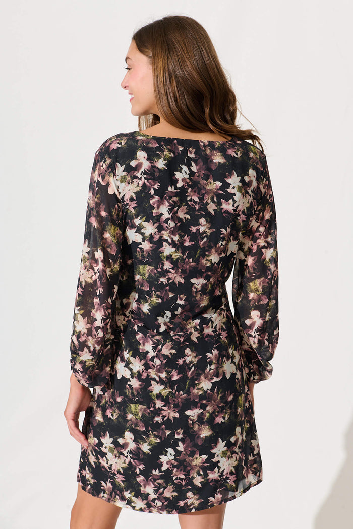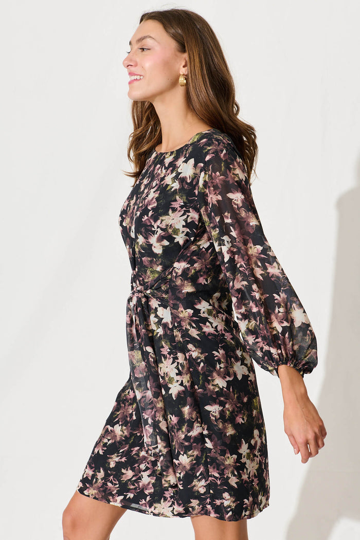 Eveleigh Dress In Black With Multi Floral