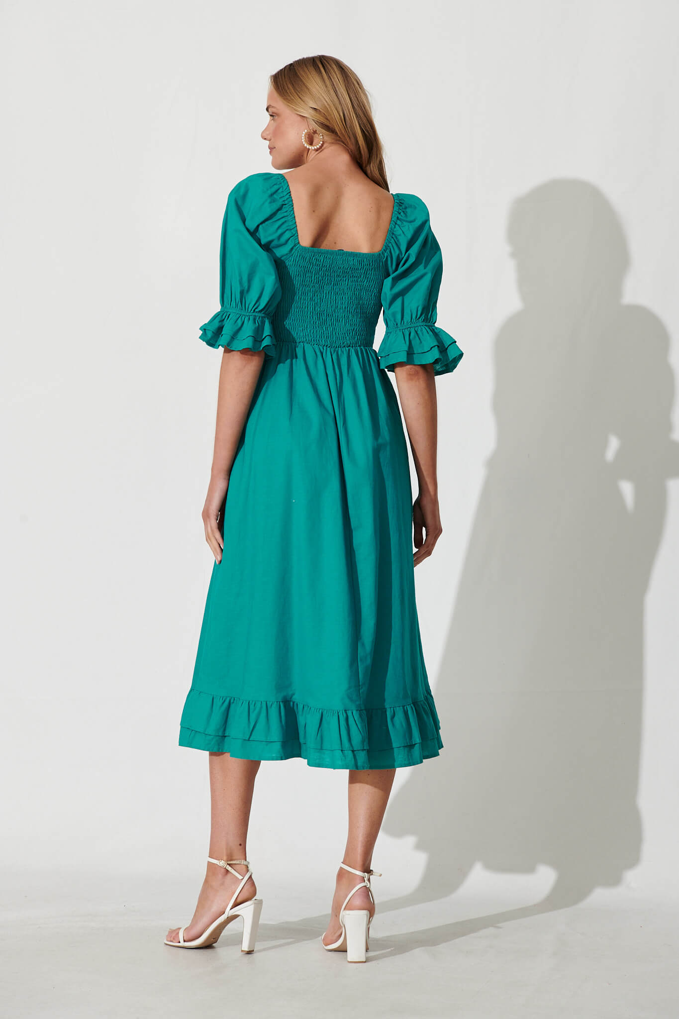Add this lightweight cotton blend dress to your summer rotation for a cool and comfortable style you'll want to wear on repeat in the heat. Our Ever Midi Dress is designed with a beautiful shirred bodice before flowing into a feminine skirt. Team with chunky sandals by day or add some jewellery and heels for more of an evening look.