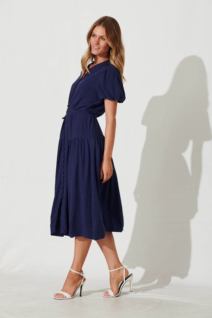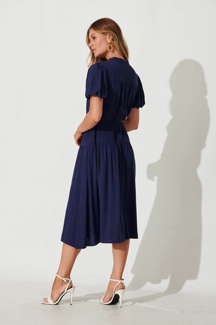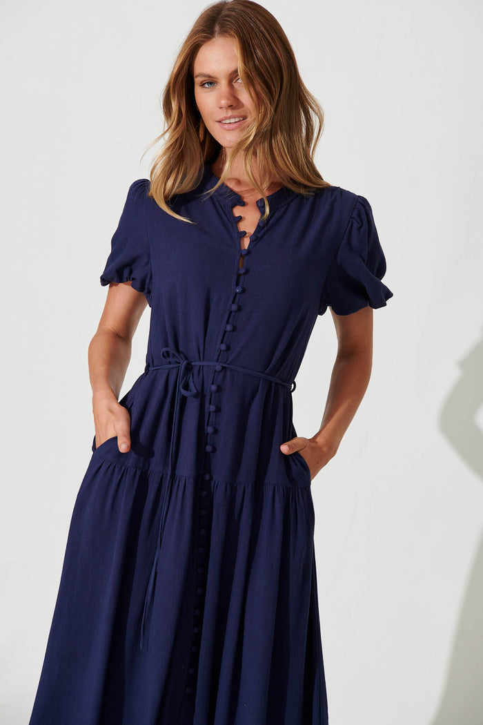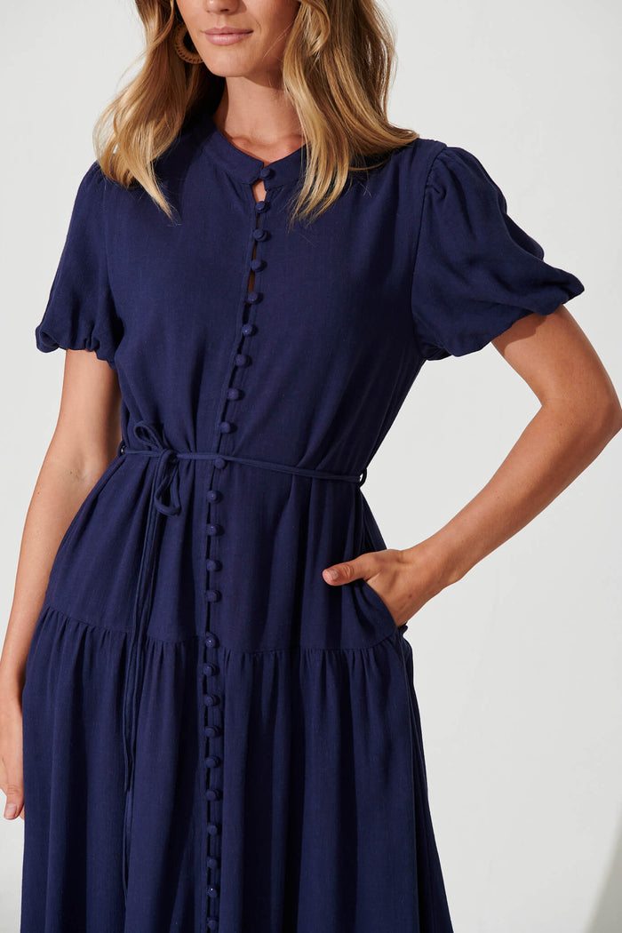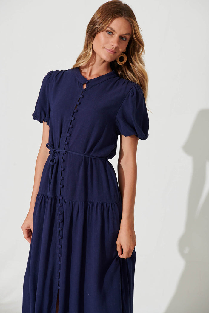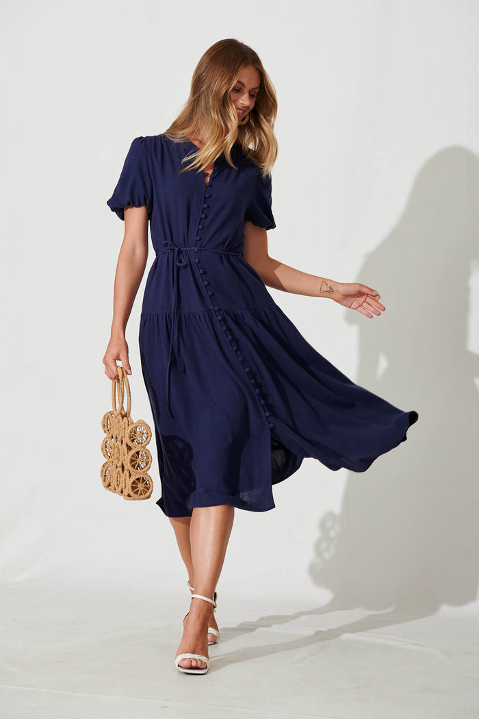 Everyday Midi Dress In Navy Linen Blend