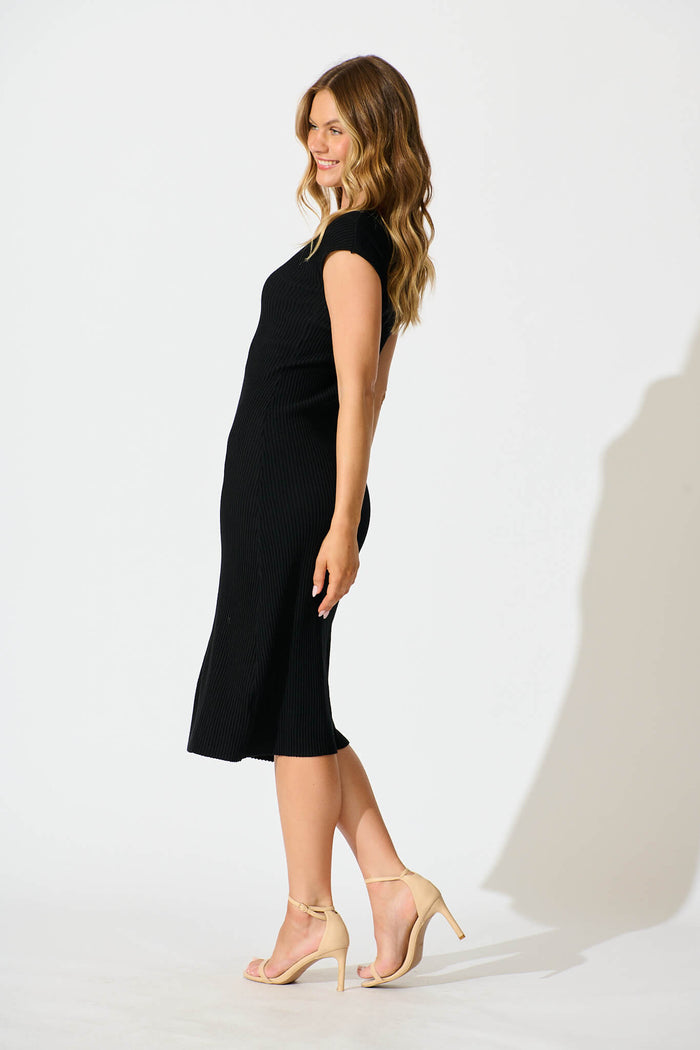 Designed with your comfort in mind, our Evita Midi Knit Dress is made from a midweight knit with built in stretch. Featuring an all-over ribbed texture, V-neckline and fitted silhouette. Effortlessly fit this dress into your weekly wardrobe rotation.