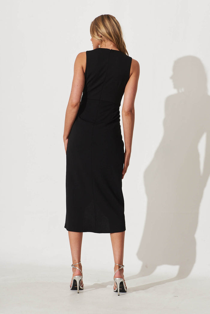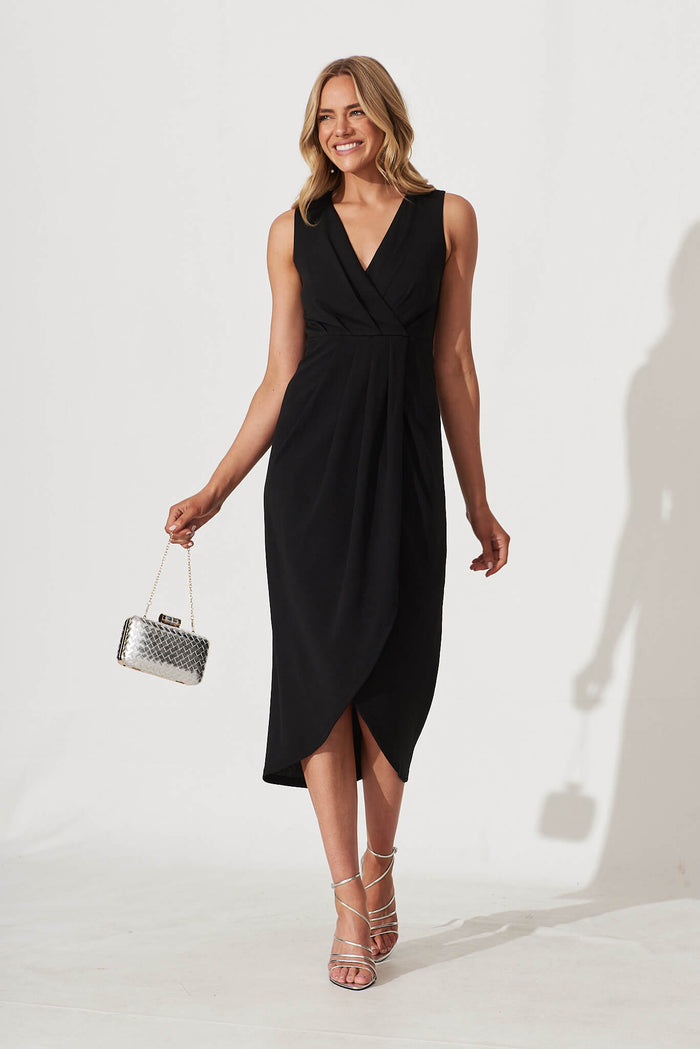 Look elegant and sophisticated in our Fairlight Midi Dress in Black. Whether it be a wedding or a work event come dressed in style paired with some gold statement jewellery and some statement heels to finish off the look.