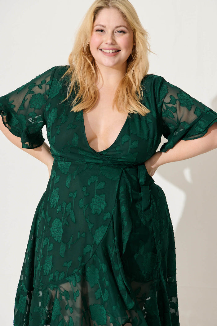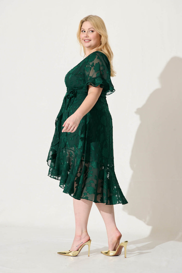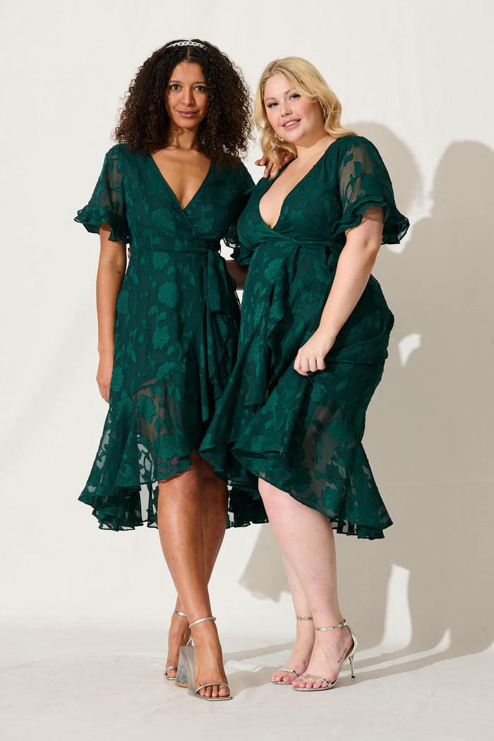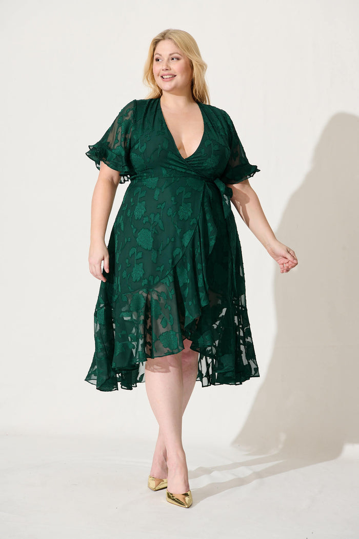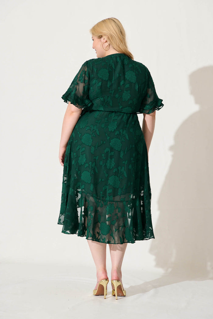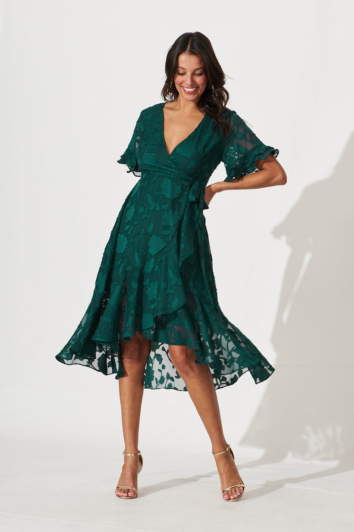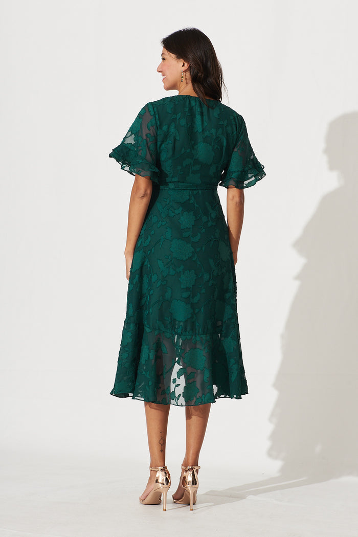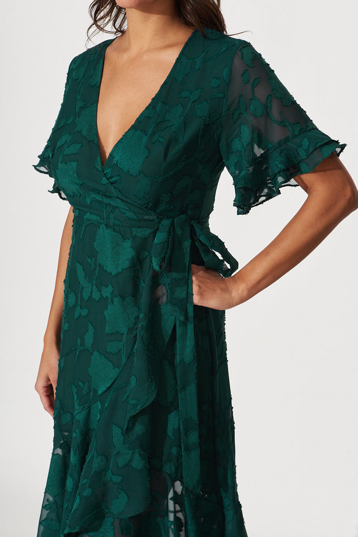 Felicidad Midi Wrap Dress In Emerald Chiffon