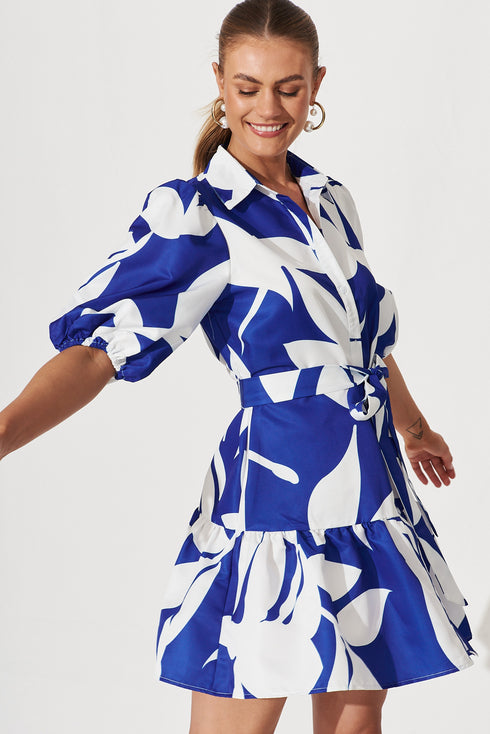 Fione Shirt Dress In Blue With White Print