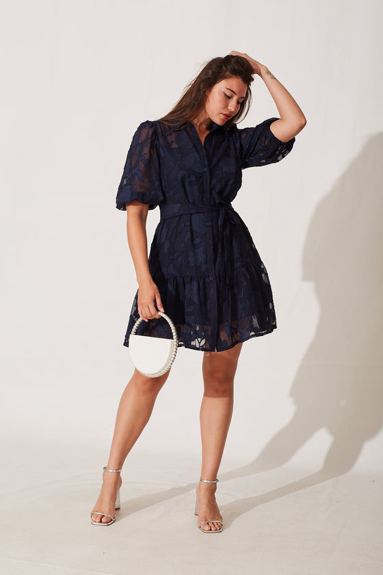 Fione Shirt Dress In Navy Burnout Chiffon