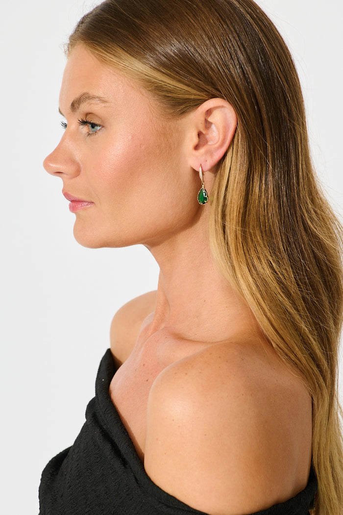 Fiora Hook Earrings in Green Stone