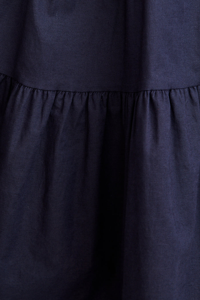 The Floating Free Smock Dress in Navy Cotton Linen is an effortless everyday staple designed for relaxed, breathable comfort. Crafted from a lightweight cotton-linen blend, this easy A-line silhouette drapes softly while keeping you cool through warmer days.