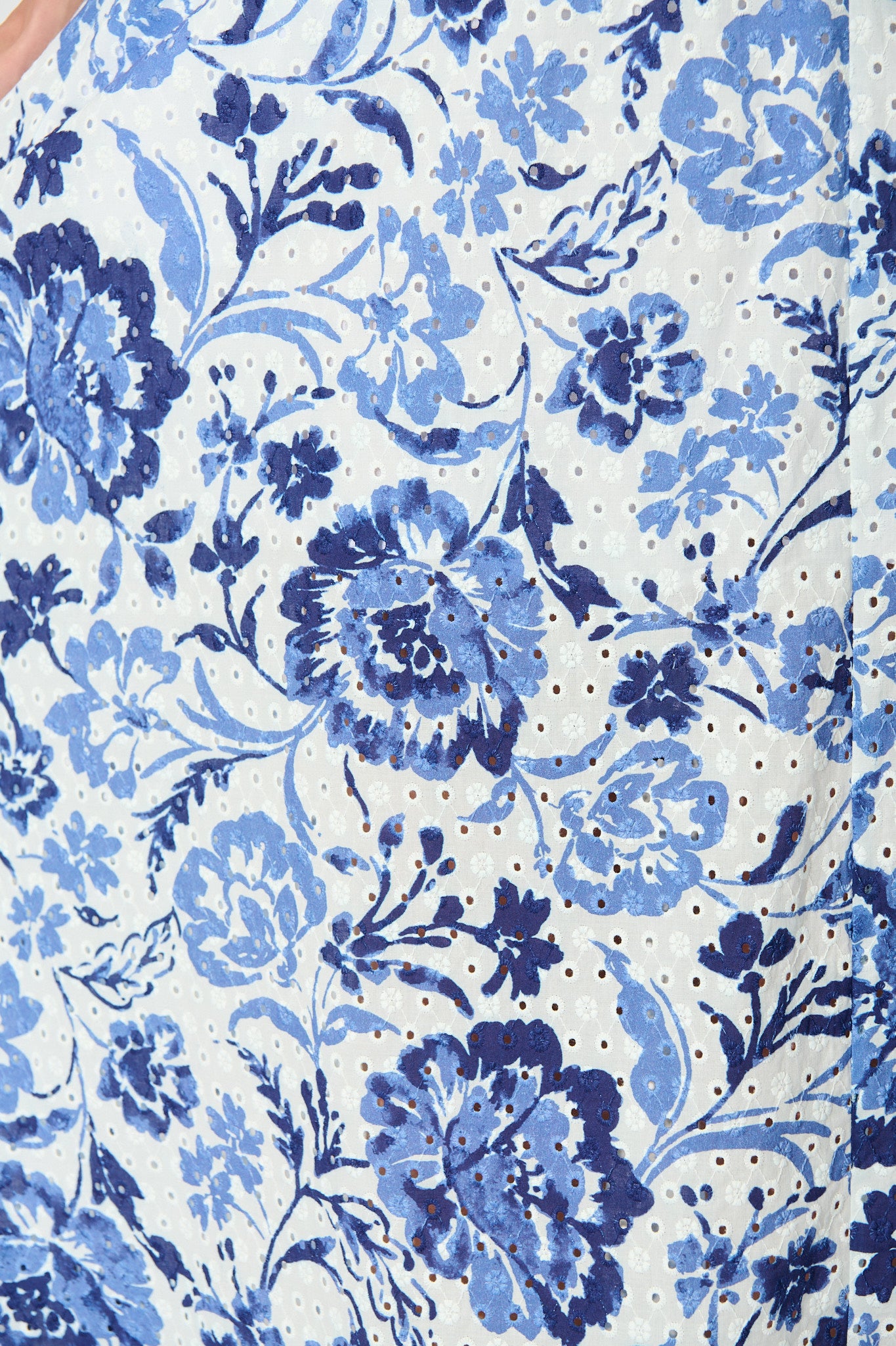 Florabel Maxi Skirt in White with Blue Floral Embroidery