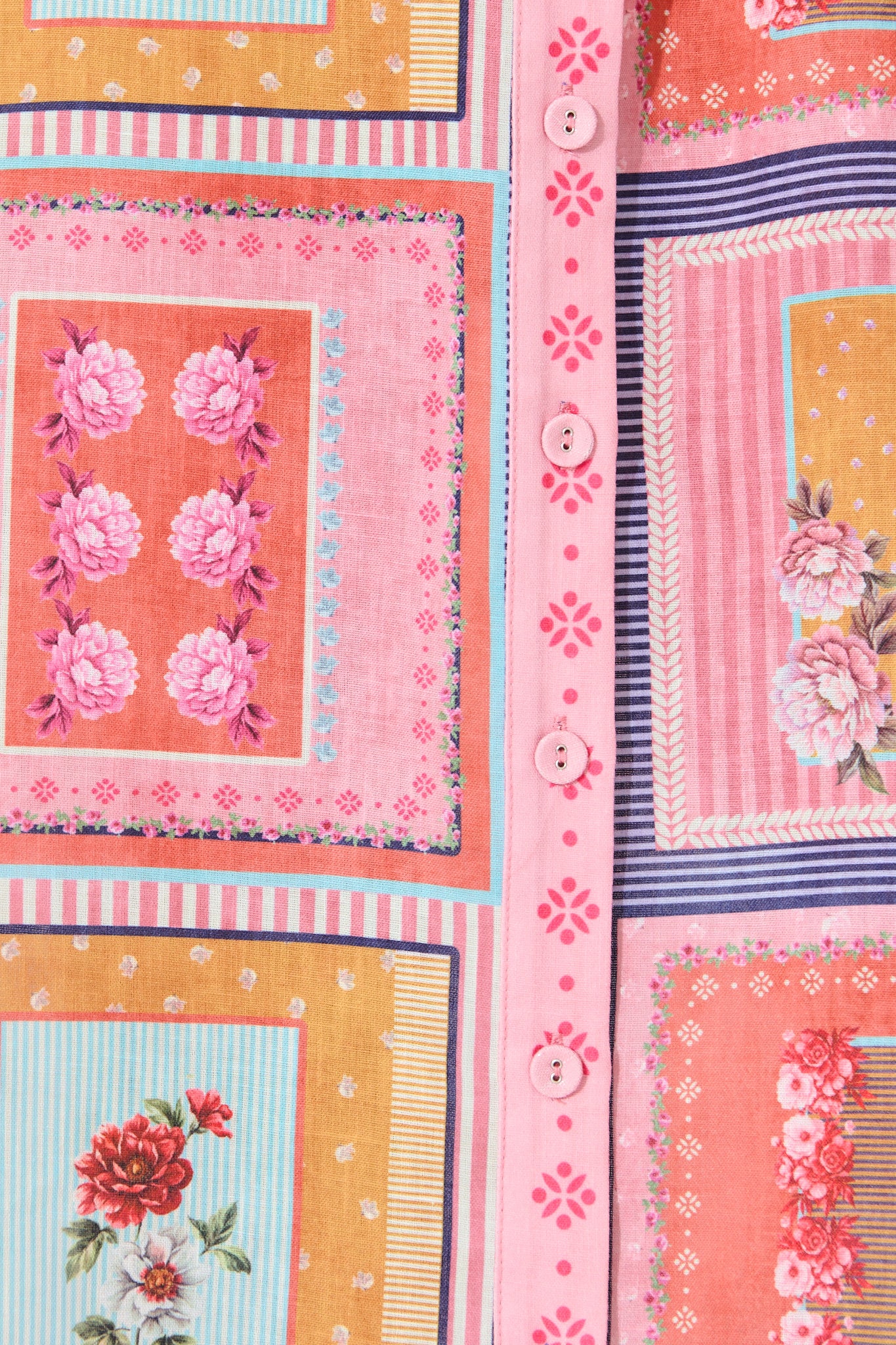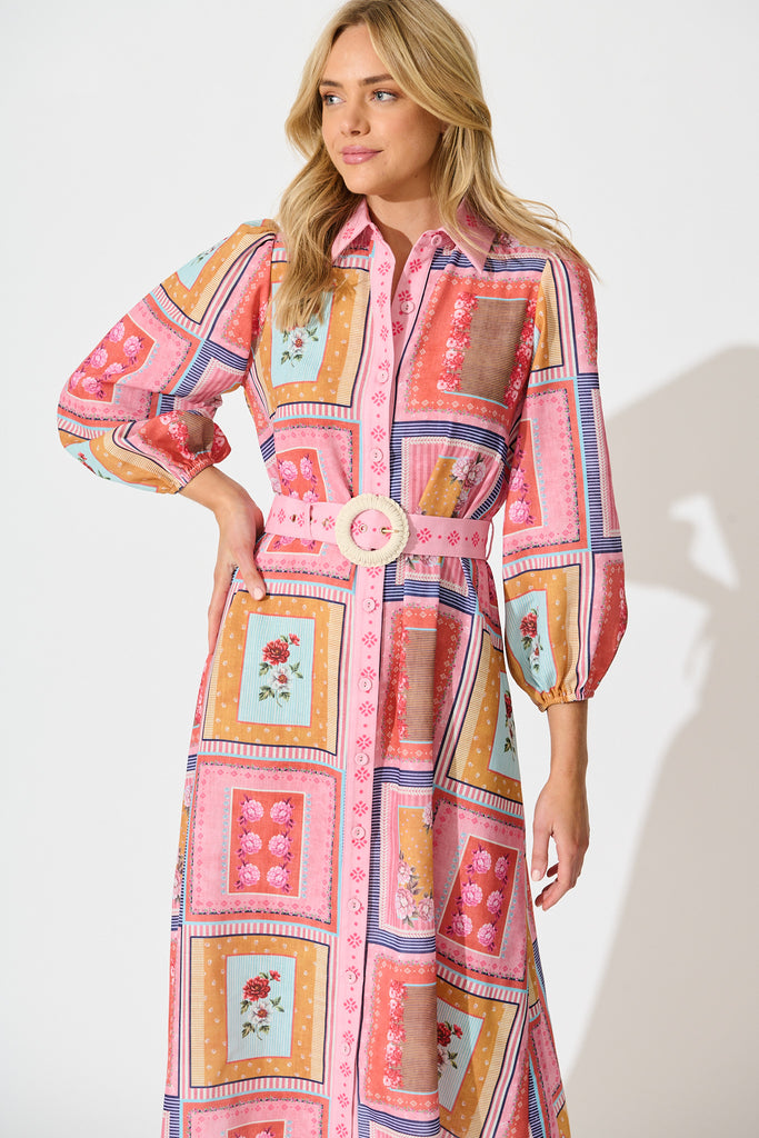 Floral Mirage Midi Shirt Dress in Pink Multi Floral Tile Print