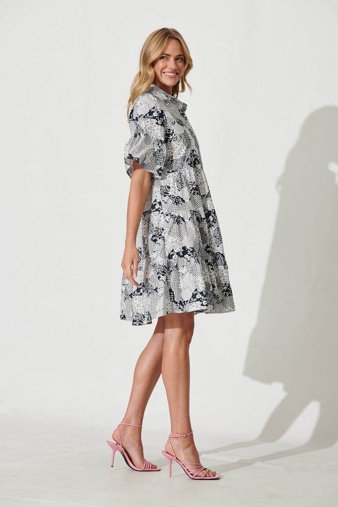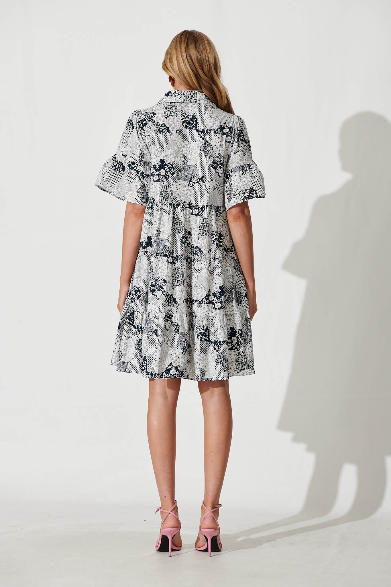 Foster Smock Shirt Dress In Blue Patchwork Floral Cotton
