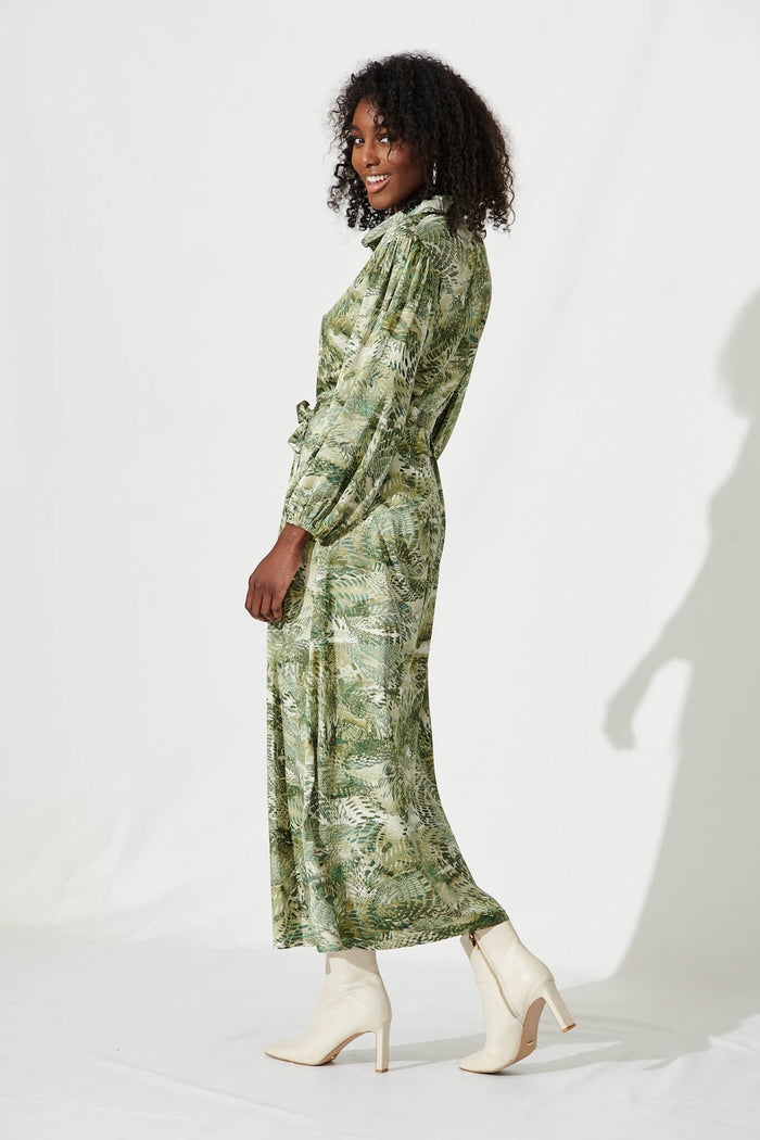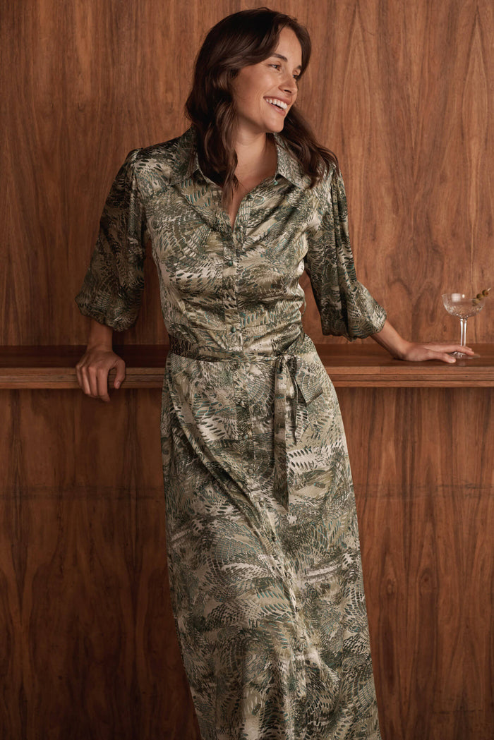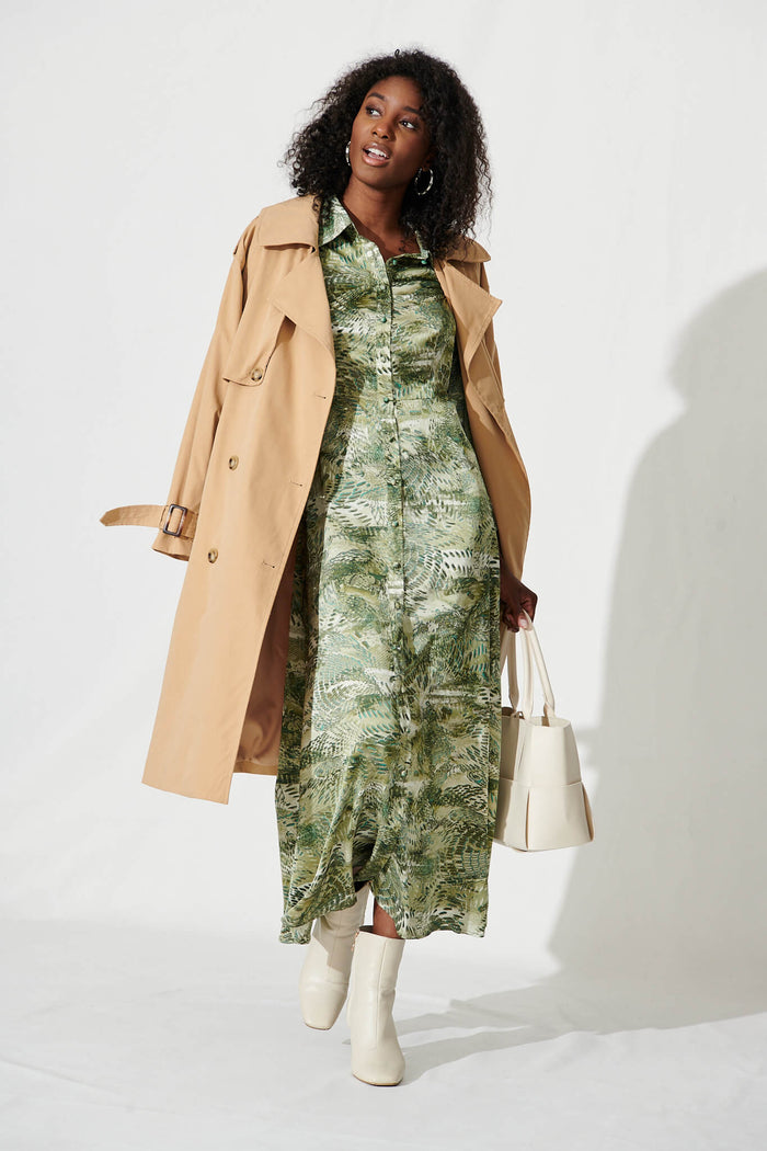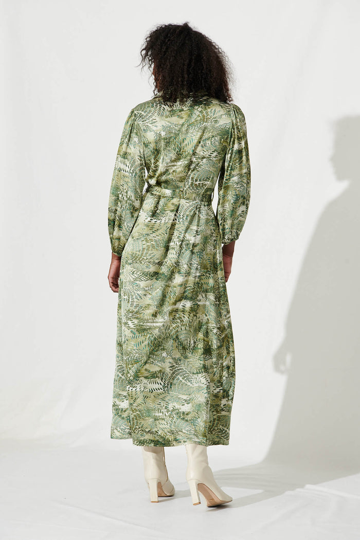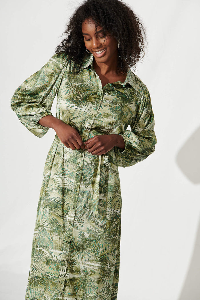 Gabi Maxi Shirt Dress In Green Multi Satin