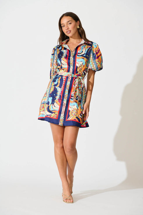 Gabrielino Shirt Dress In Navy Multi Print Satin