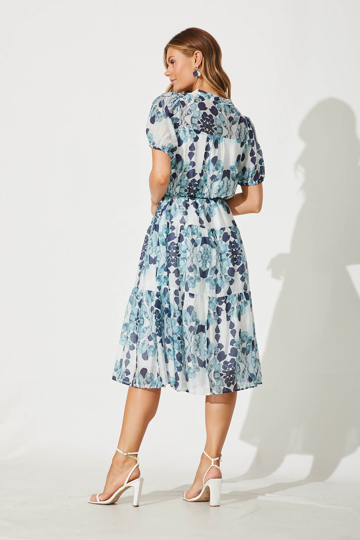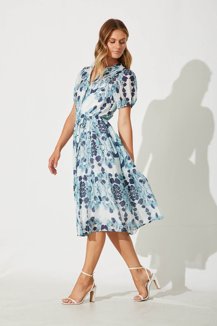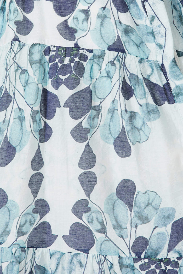 Gallery Midi Dress In Blue Leaf Print Cotton Blend