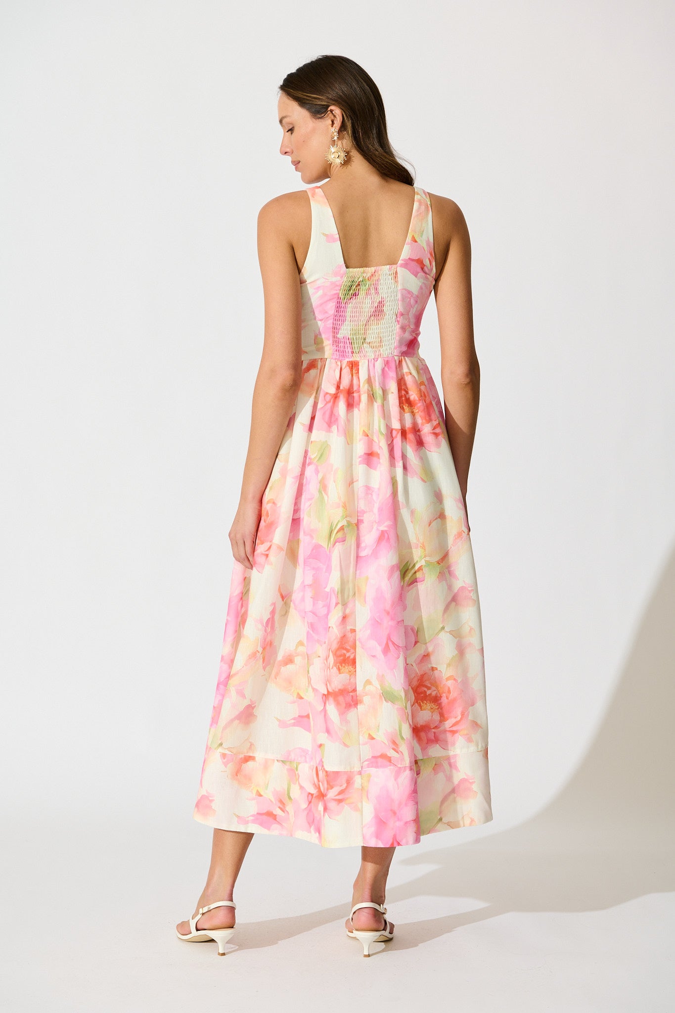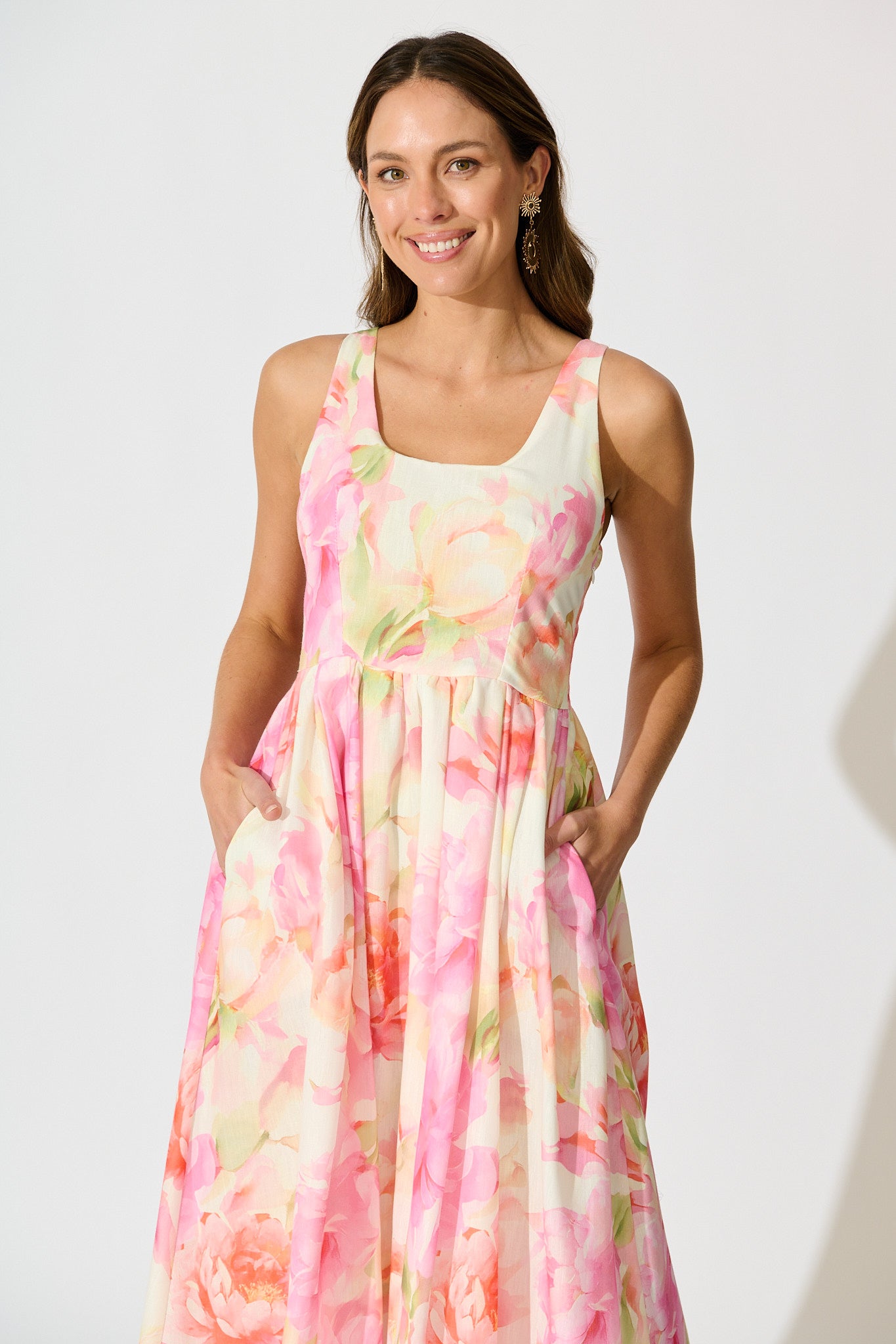 Garden Soirée Maxi Dress in Pink Multi Floral Linen Blend