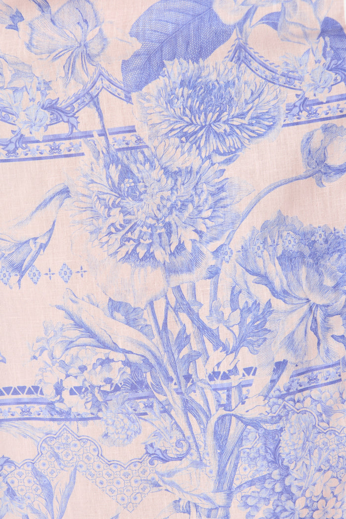 Garden Spritz Maxi Shirt Dress in Blush with Blue Linen Blend