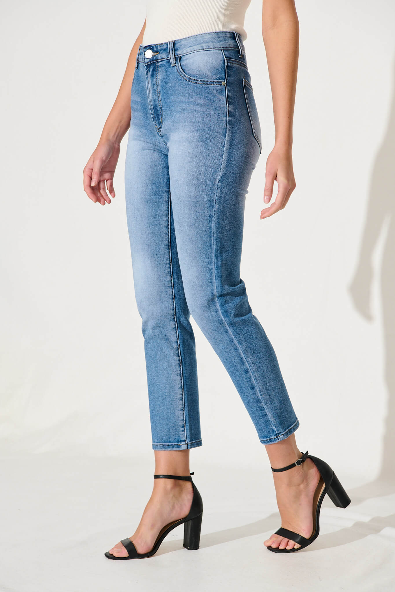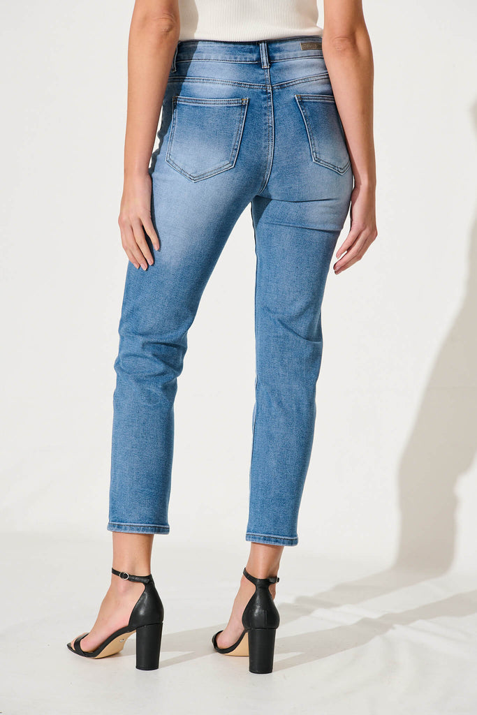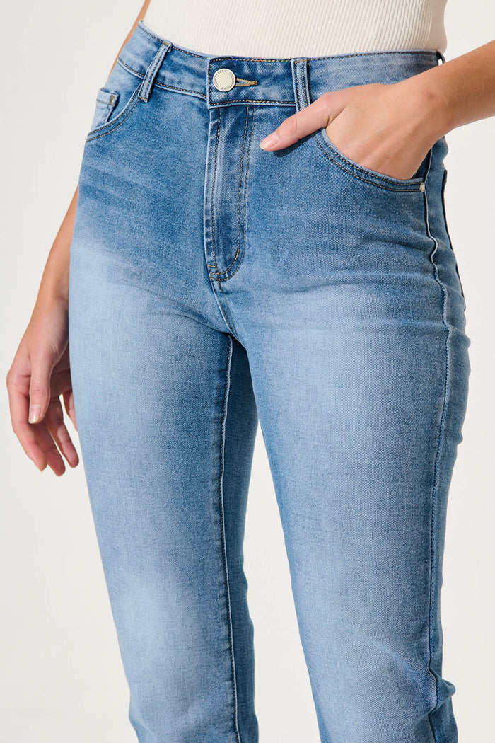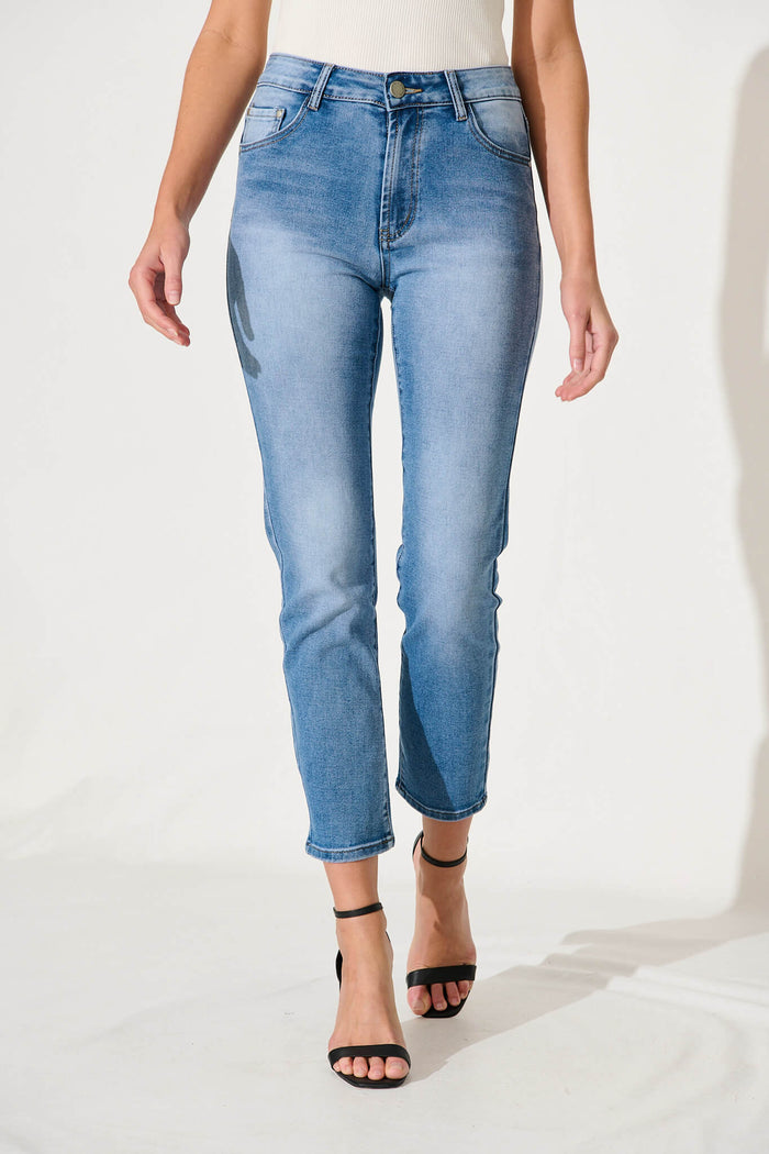 Gateway Mid Rise Straight Leg Crop Jean In Blue Denim