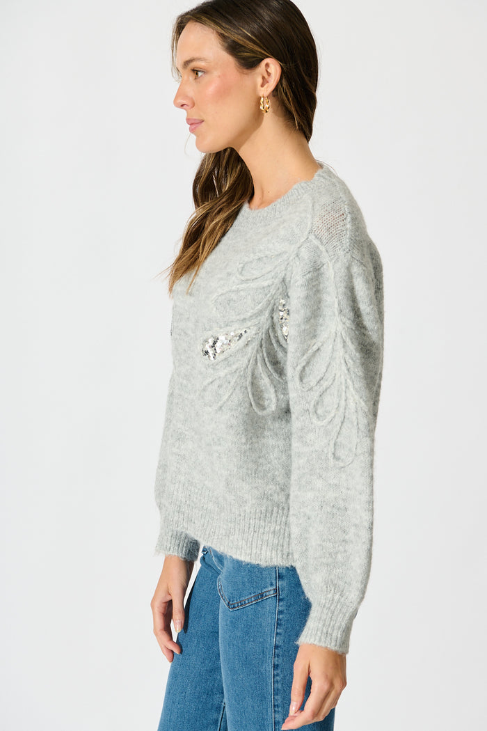 Gemma Knit in Grey Marle with Silver Sequin Wool Blend
