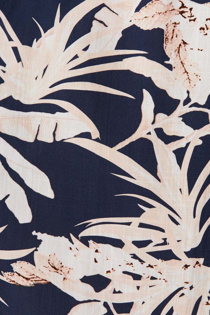 Getaway Shirt Midi Dress In Navy Leaf Print Linen Blend
