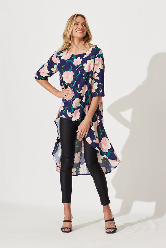Give Love High Low Top In Navy With Blush Floral