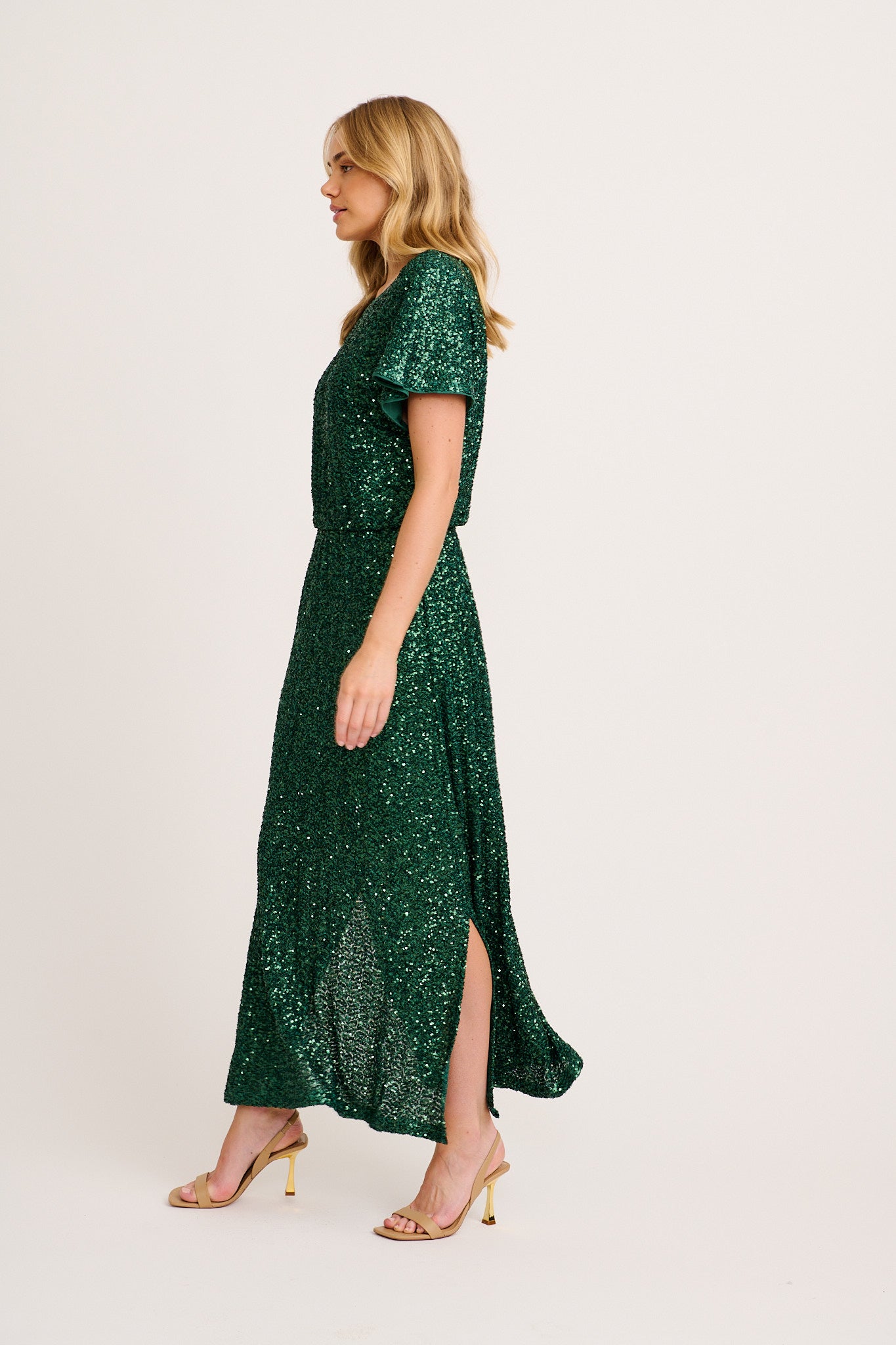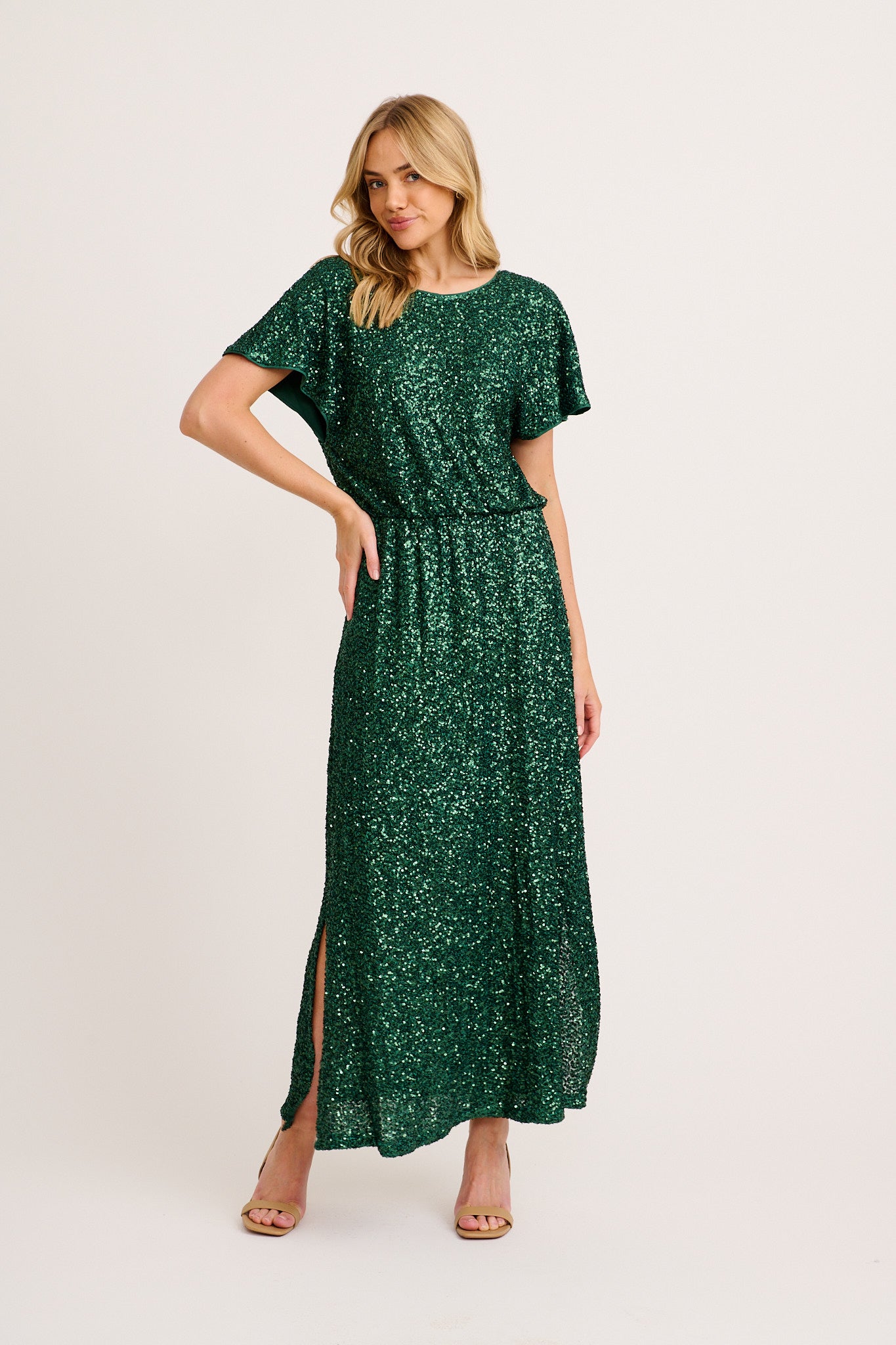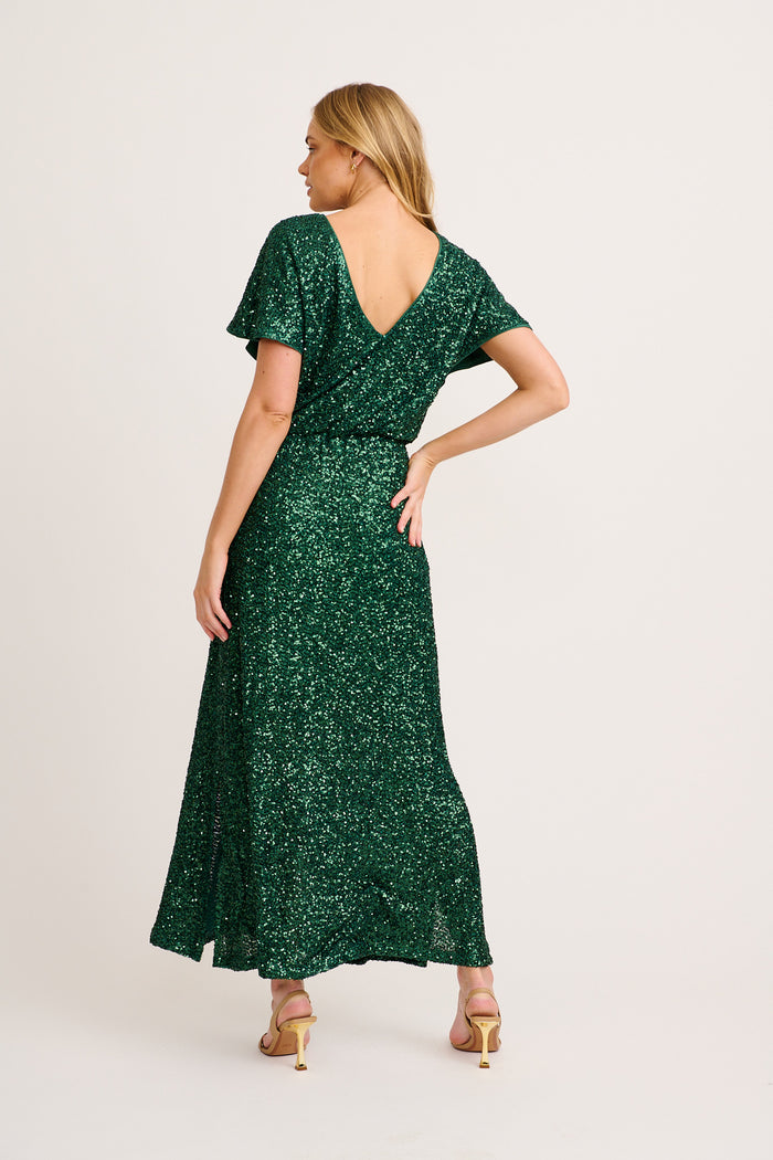 Glistening Hour Reversible Maxi Dress in Emerald Sequin