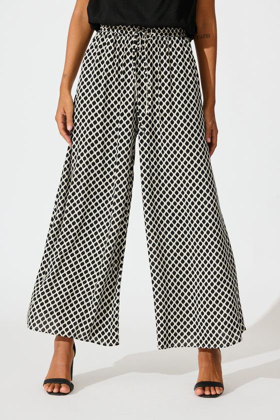 Goldie Wide Leg Pant in Black and Cream Geometric Print