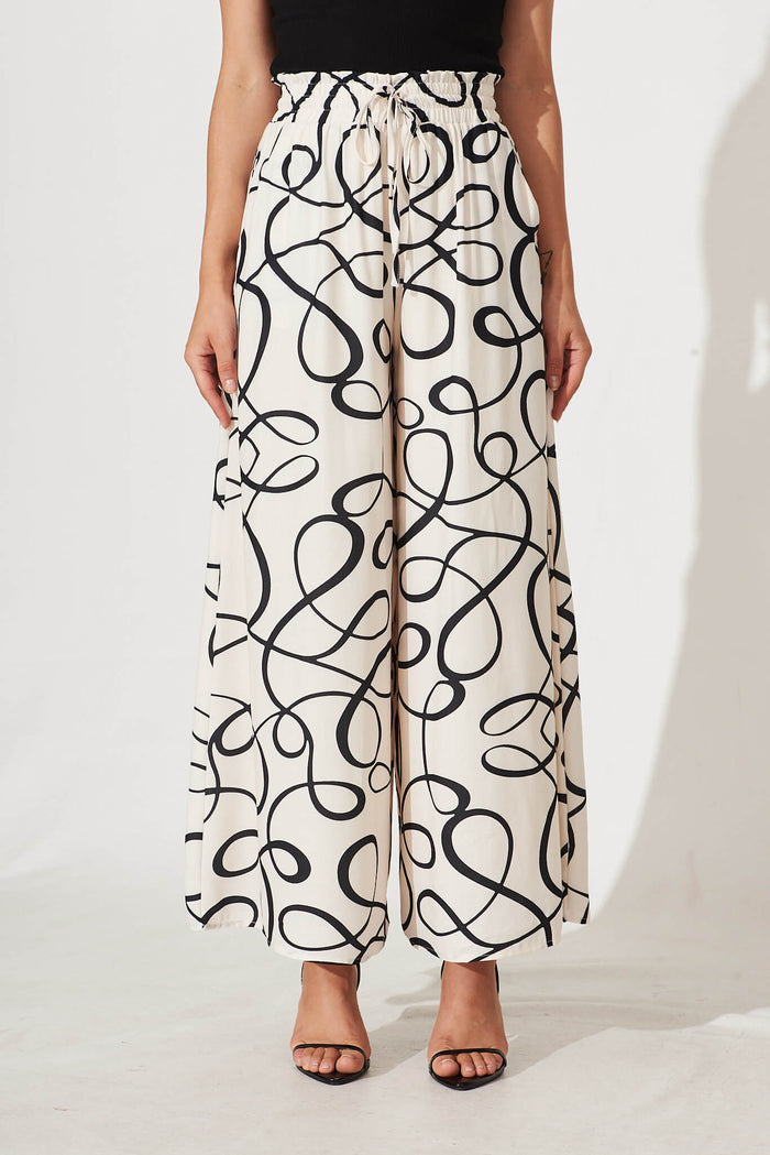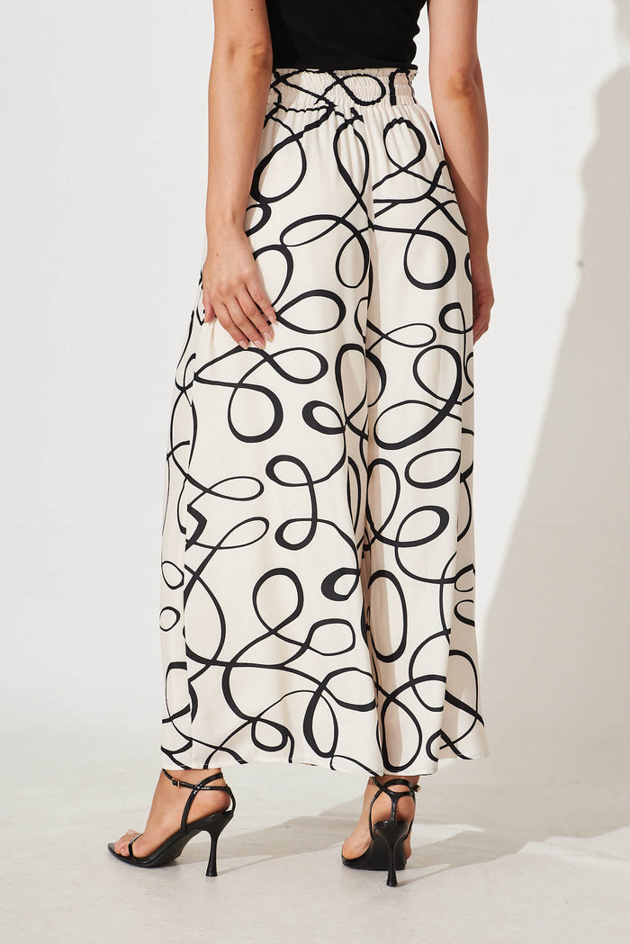 Goldie Wide Leg Pant In Cream With Black Swirl Print