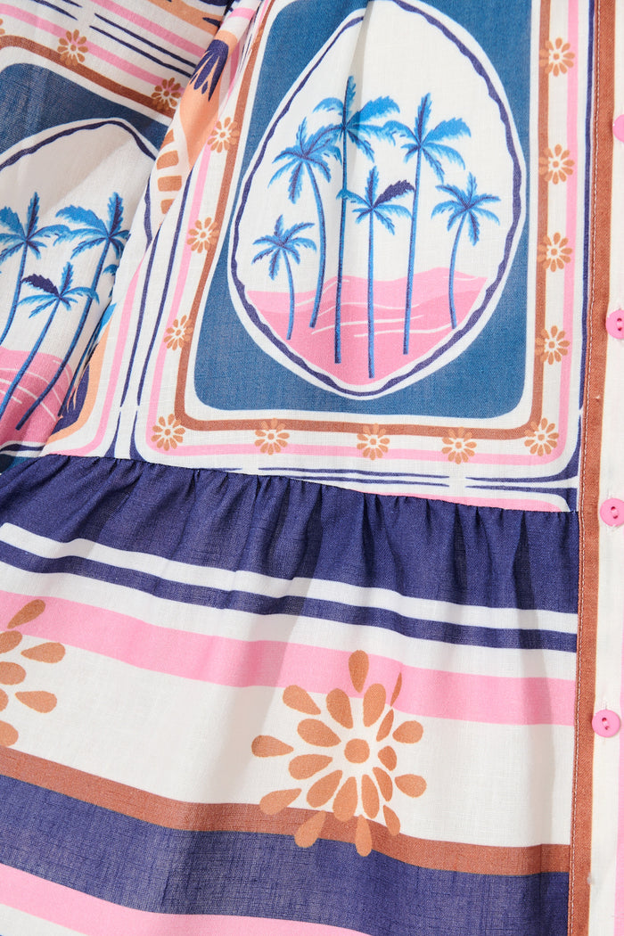 Haisley Shirt Dress in Multi Tile Print Linen Blend
