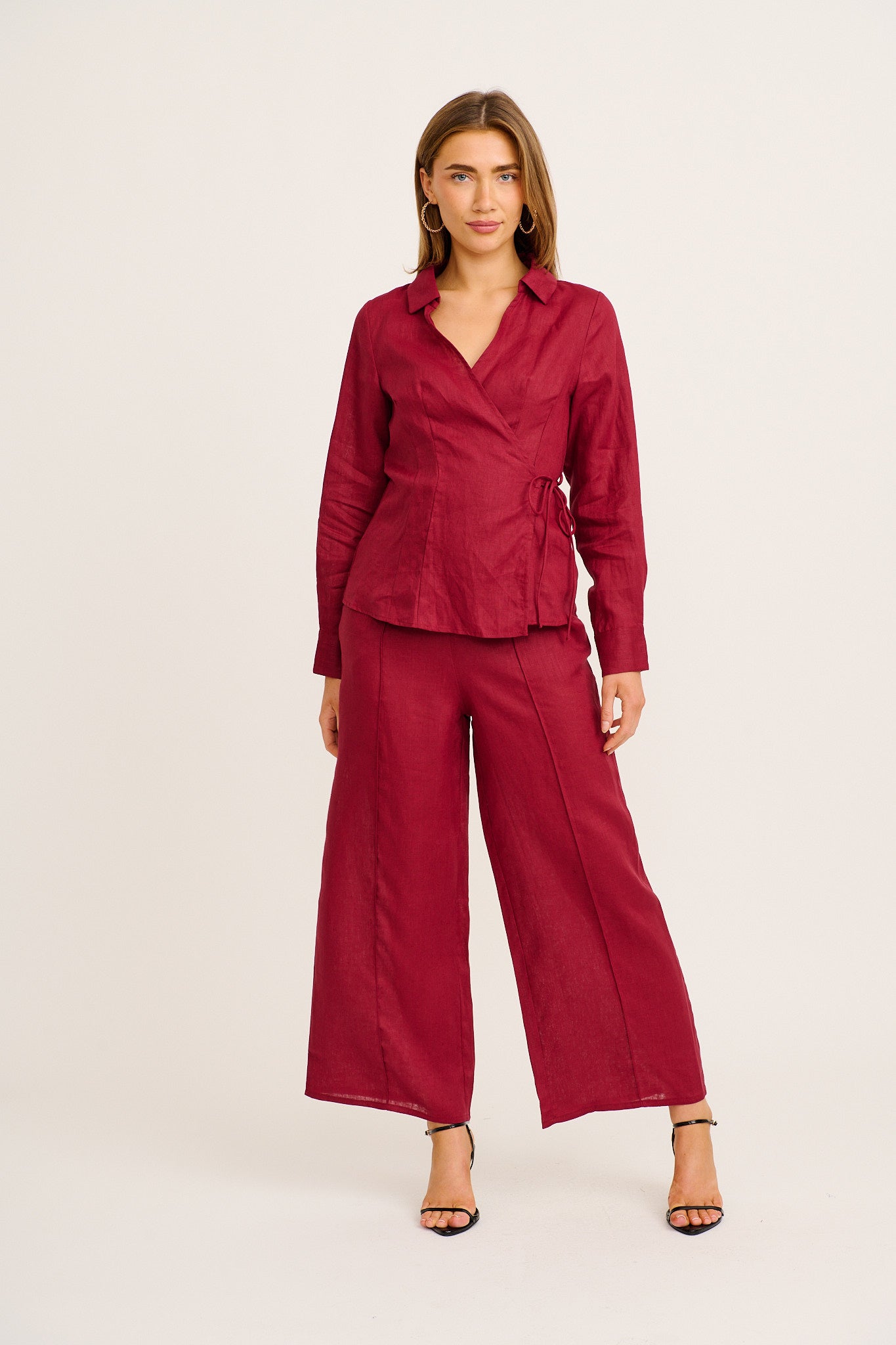 Sea Breeze Wrap Top & Halara Pant Wine Linen