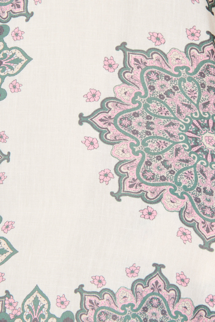 Harbour Shirt Dress in Cream with Green Multi Linen Blend