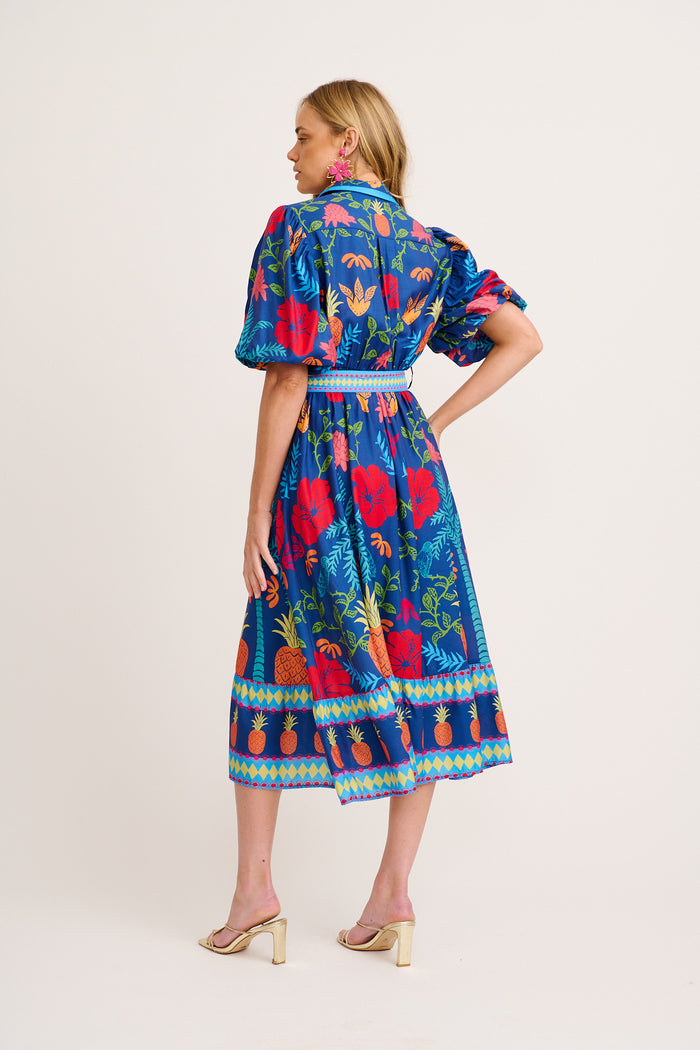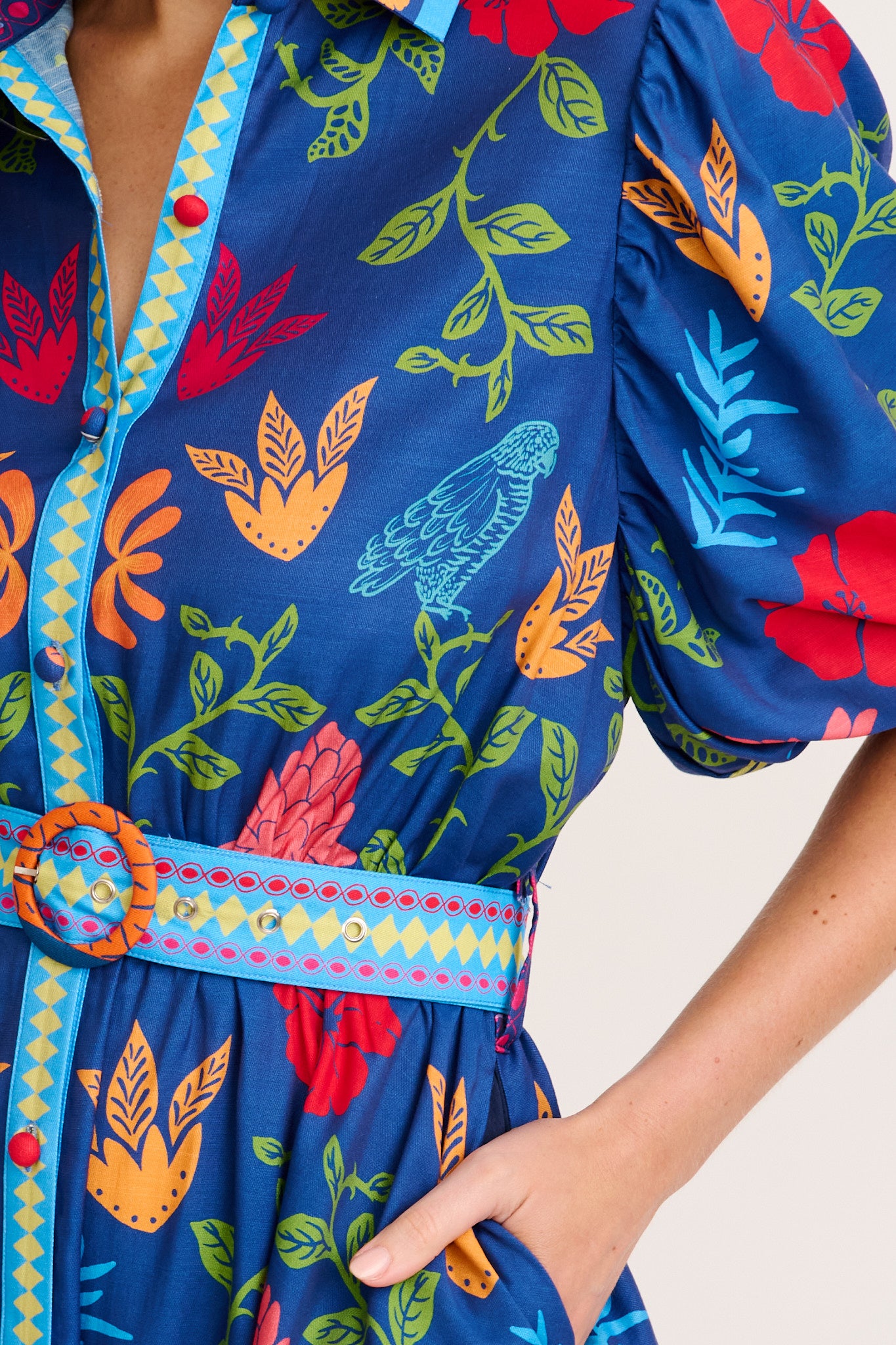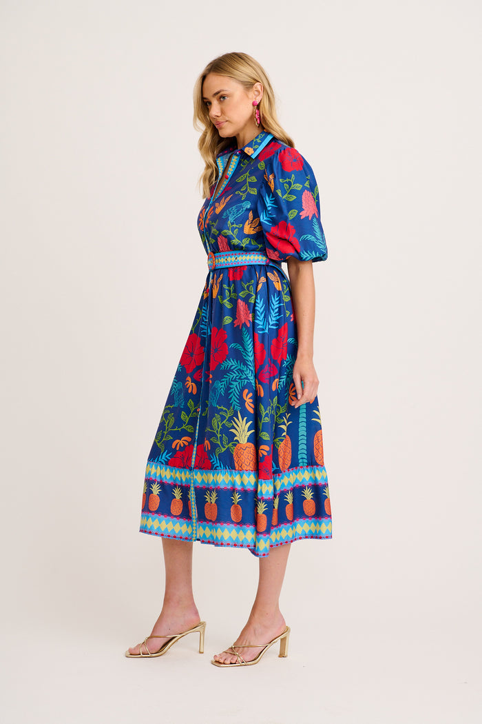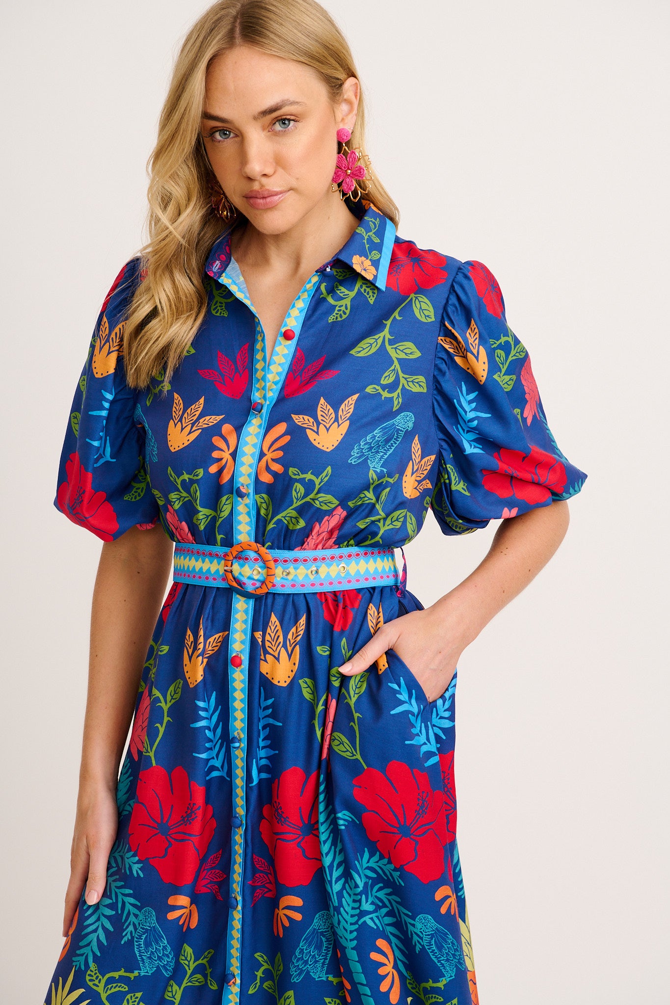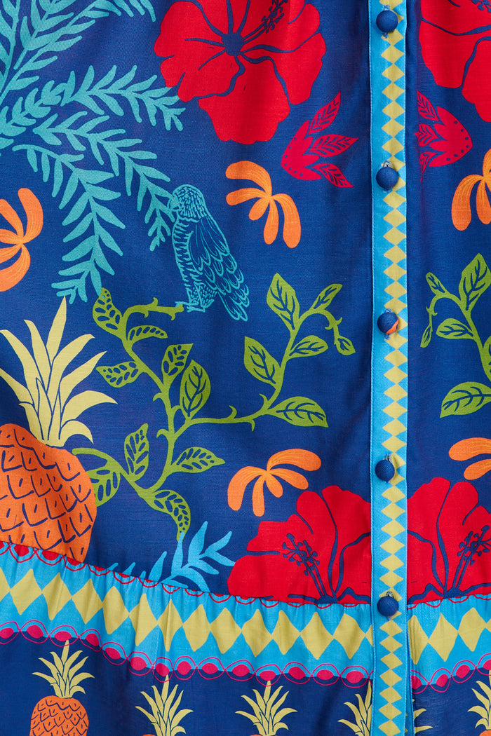 Harlyn Maxi Shirt Dress in Navy Multi Tropical Linen Blend