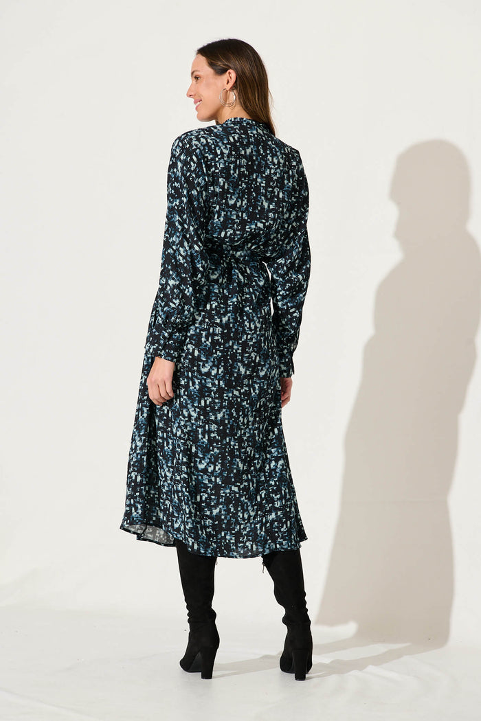 Harmony Midi Shirt Dress In Navy With Multi Print