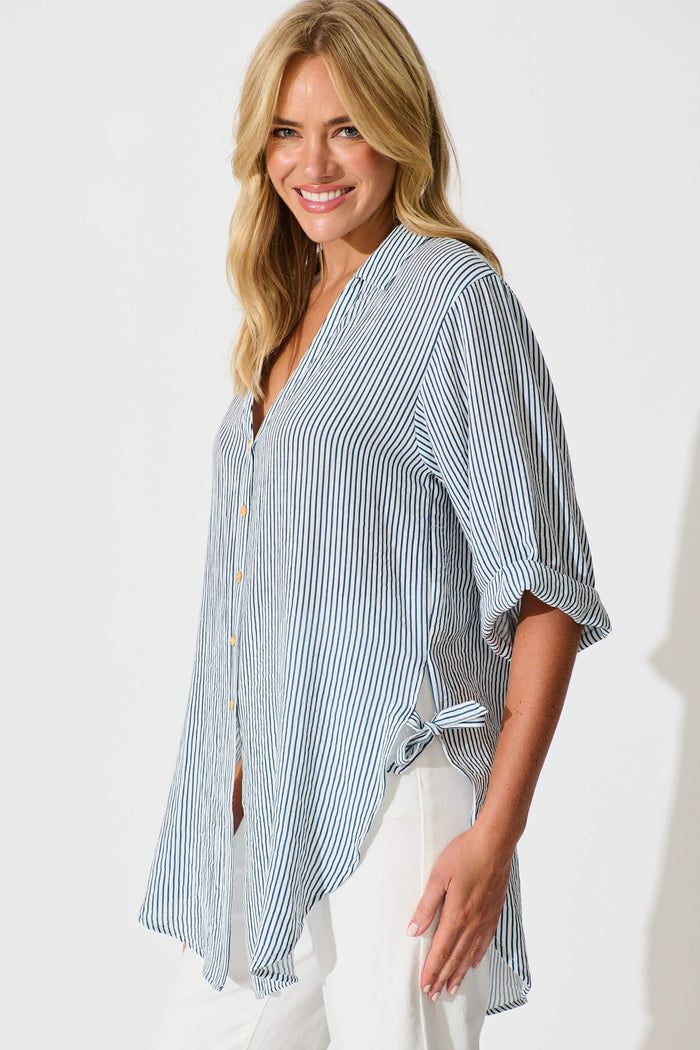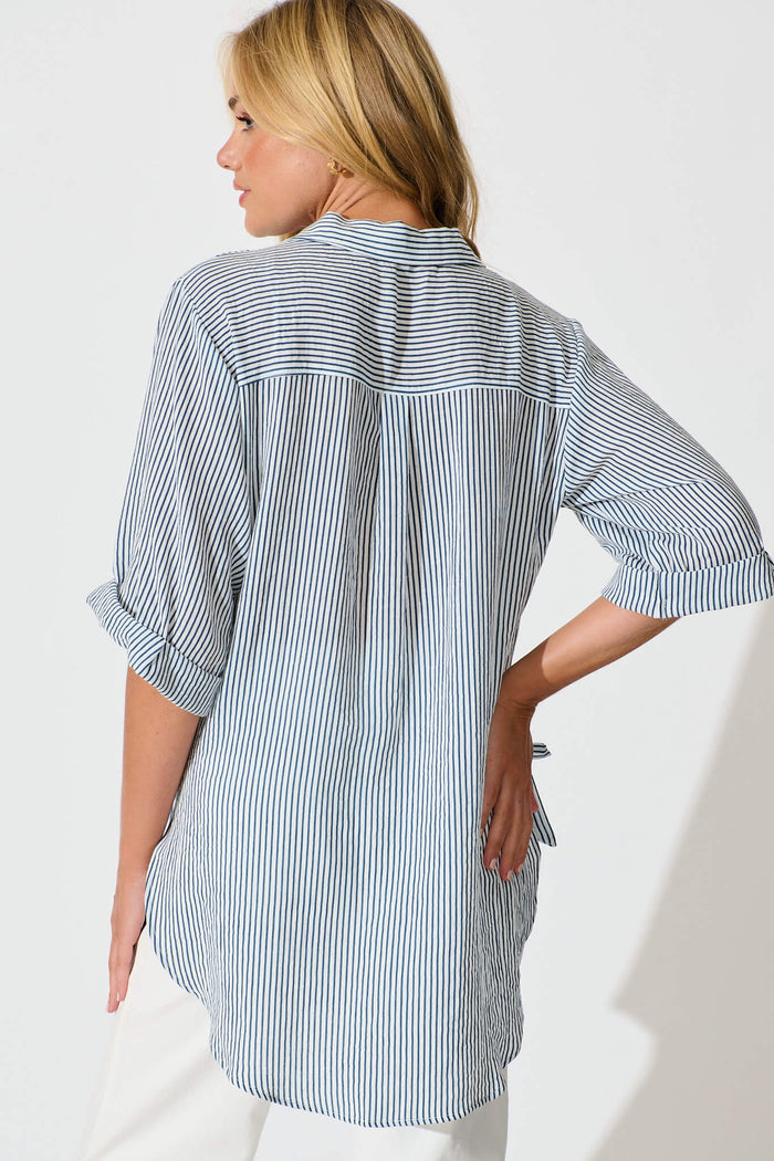 Harper Shirt in Blue and White Stripe Cotton Blend