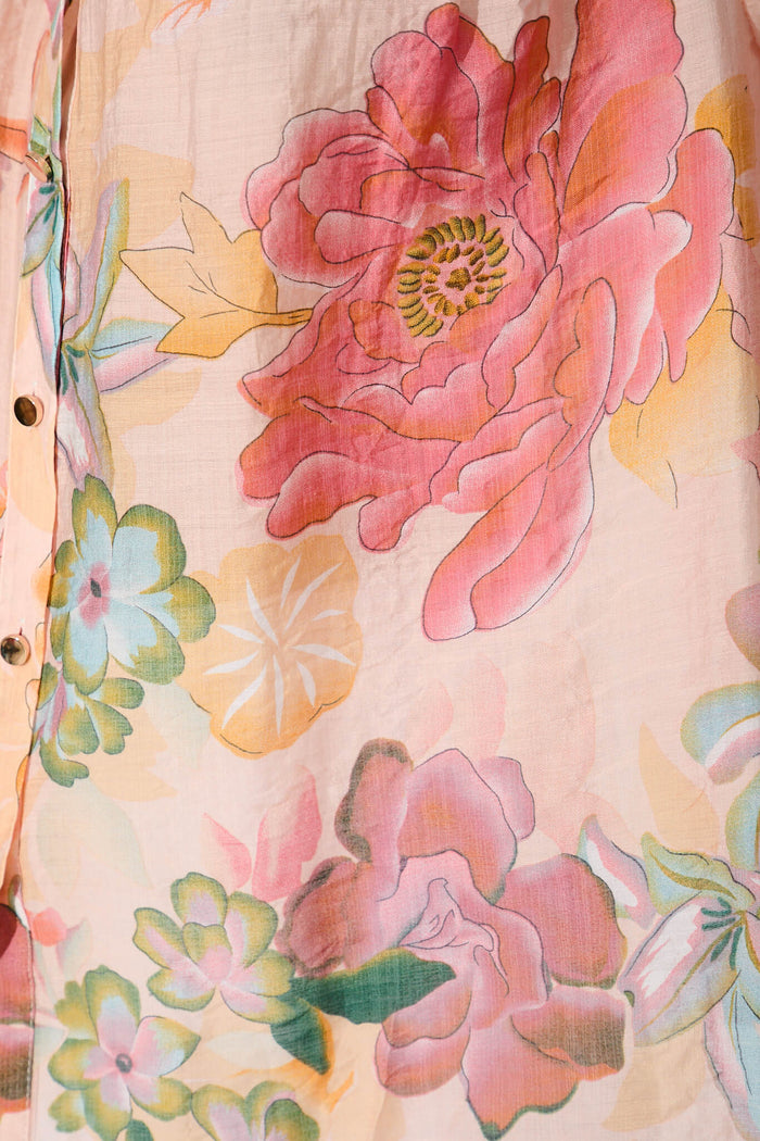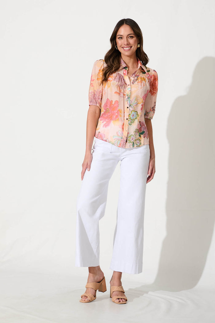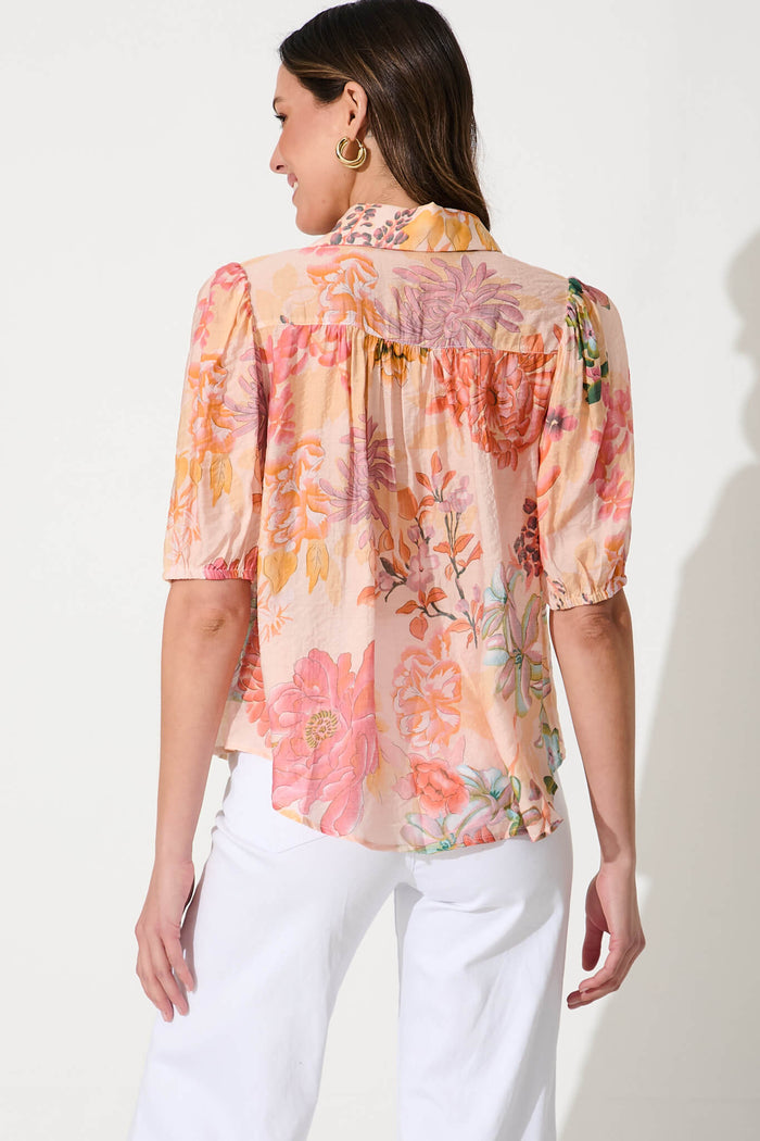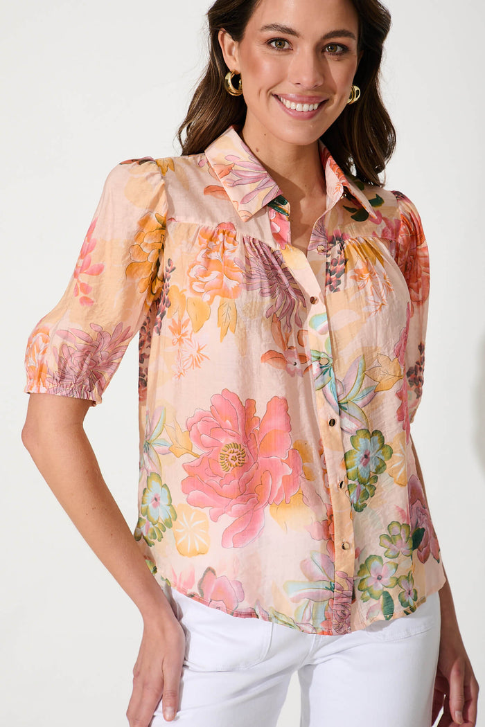 Haruna Shirt In Apricot With Rust Floral