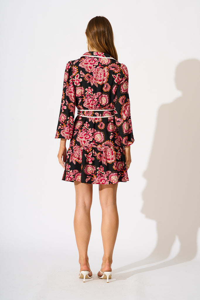 Hillary Shirt Dress in Black and Red with Contrast Trim