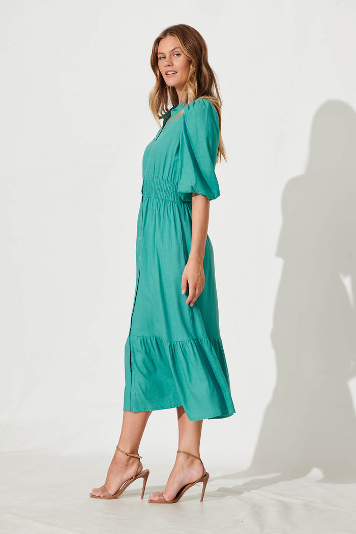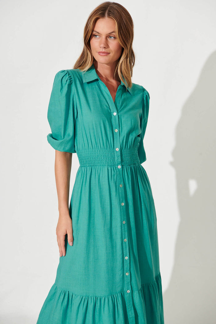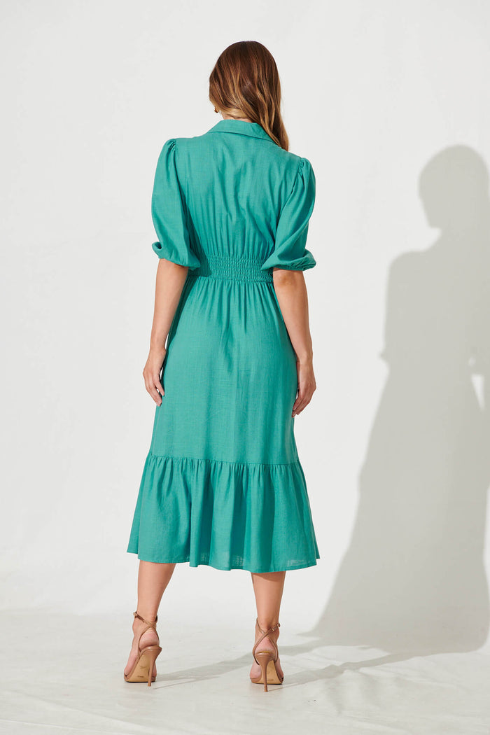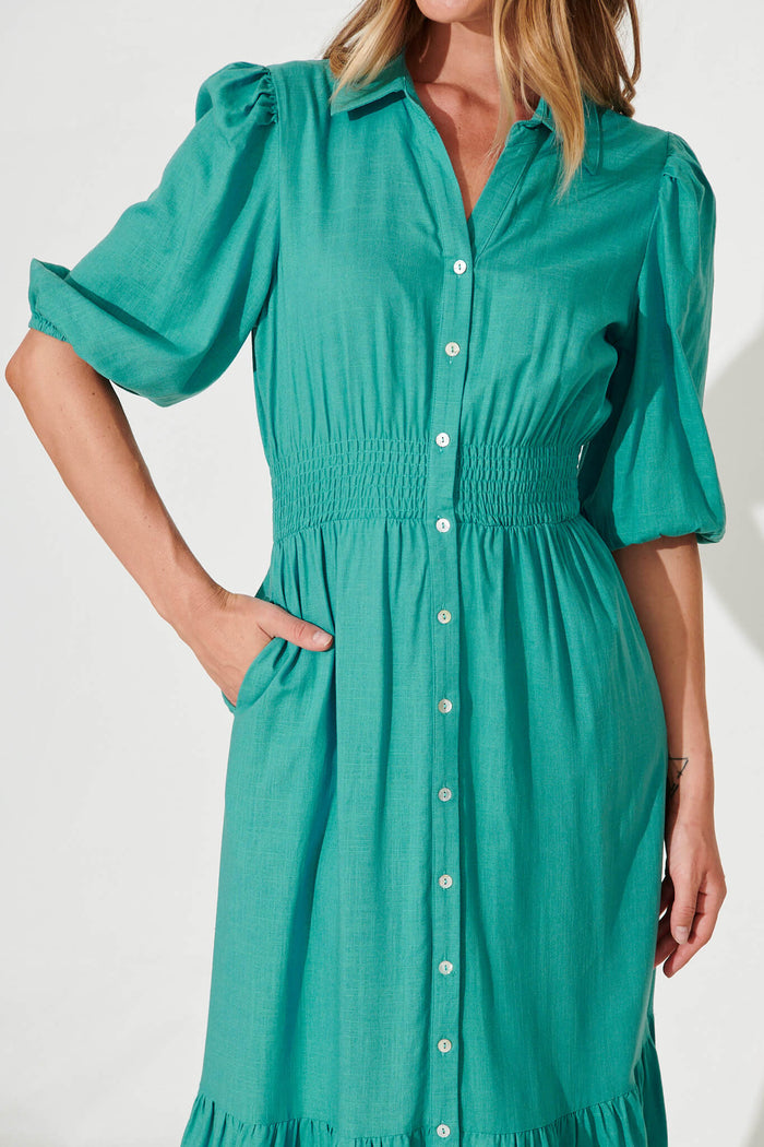 Hopkins Midi Shirt Dress In Aqua Linen Blend