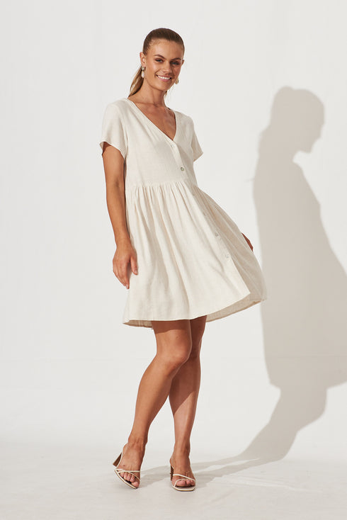 Horizon Smock Dress In Oatmeal Linen Blend