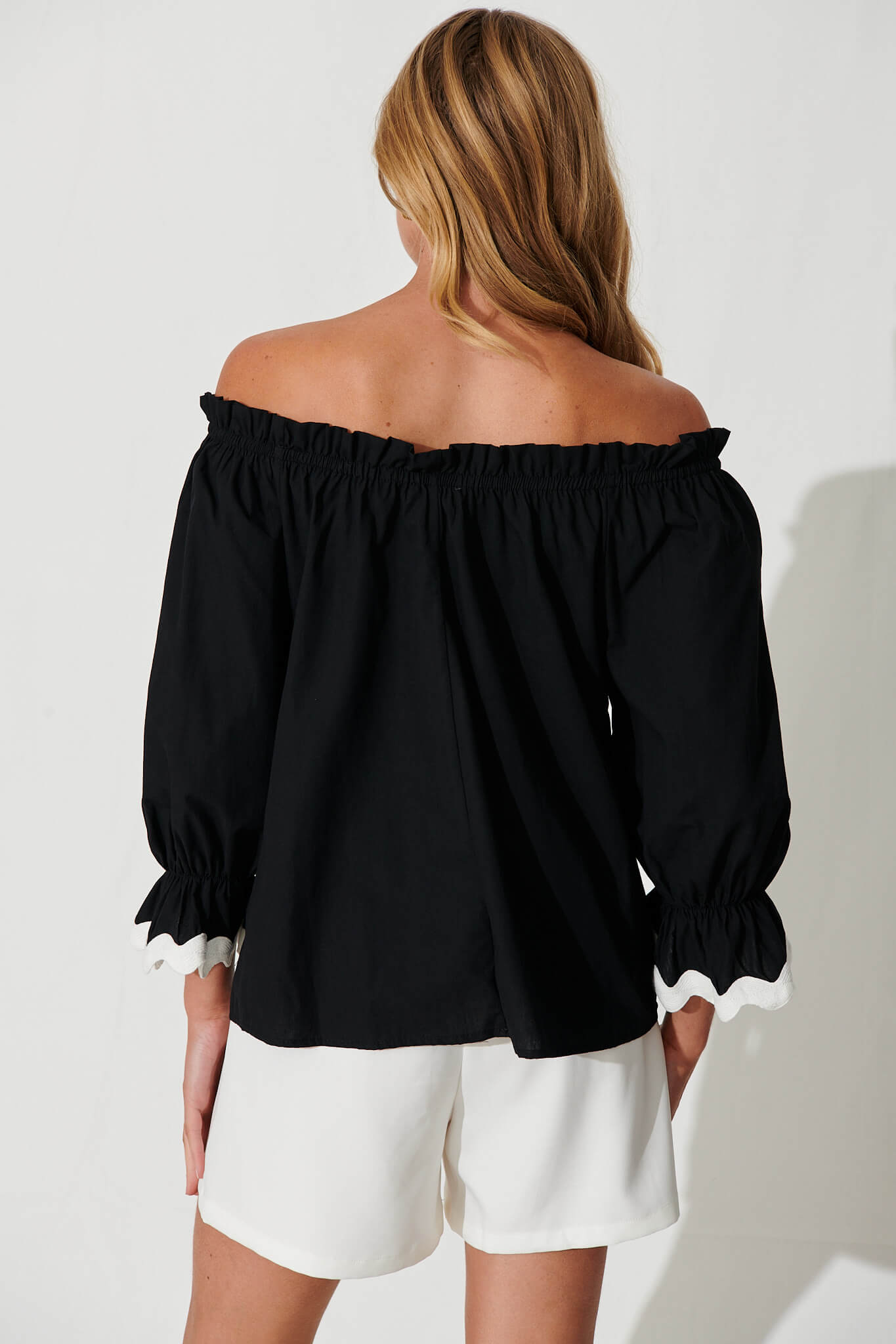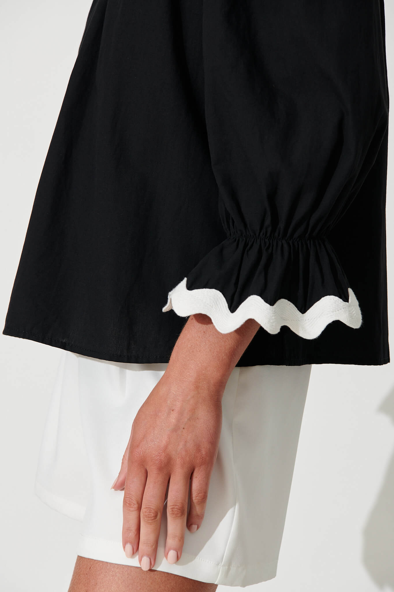 Imani Top In Black With White Ric Rac Trim Cotton