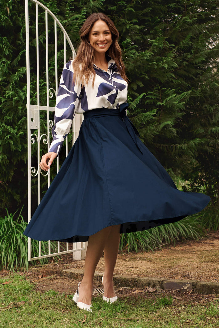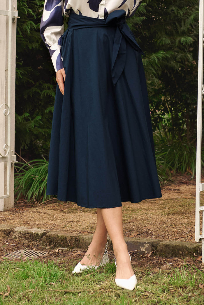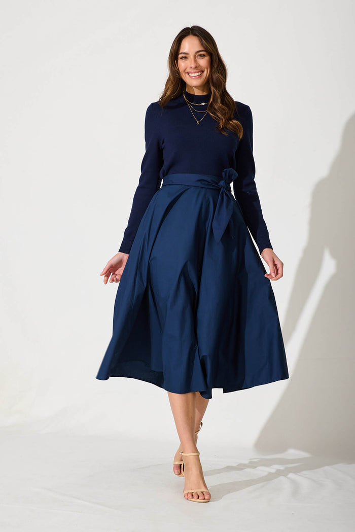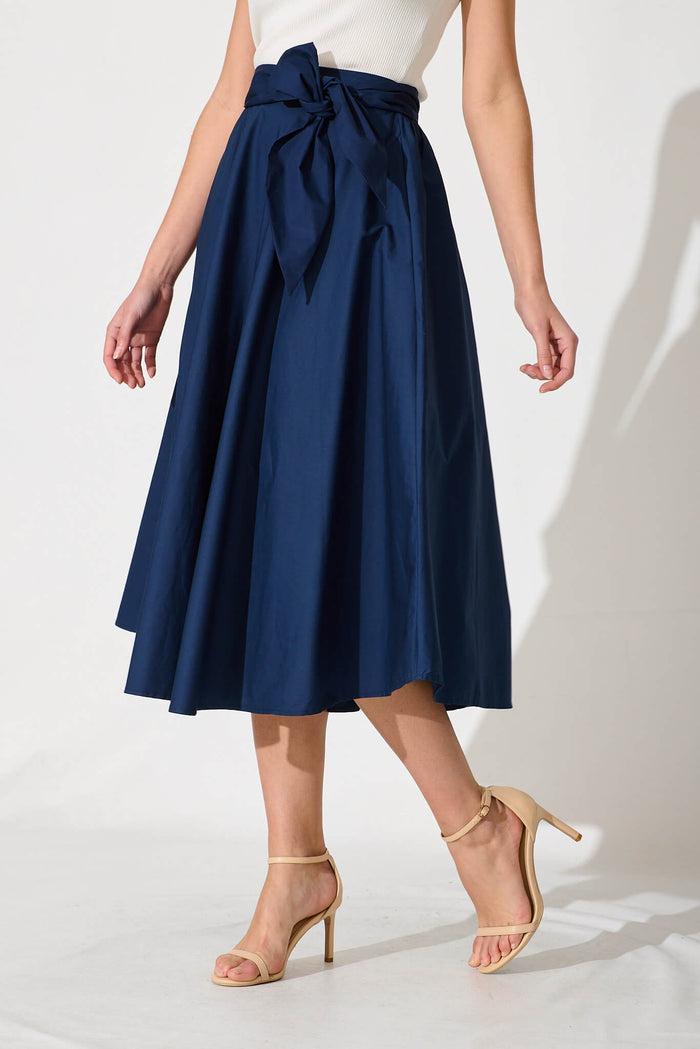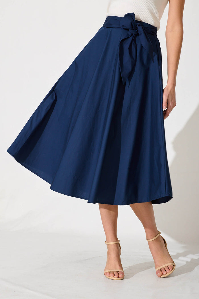 Ivy Midi Skirt In Navy Cotton