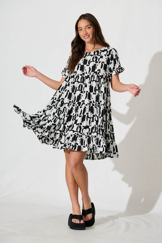 Jacklyn Smock Dress in Black and White Graphic Print