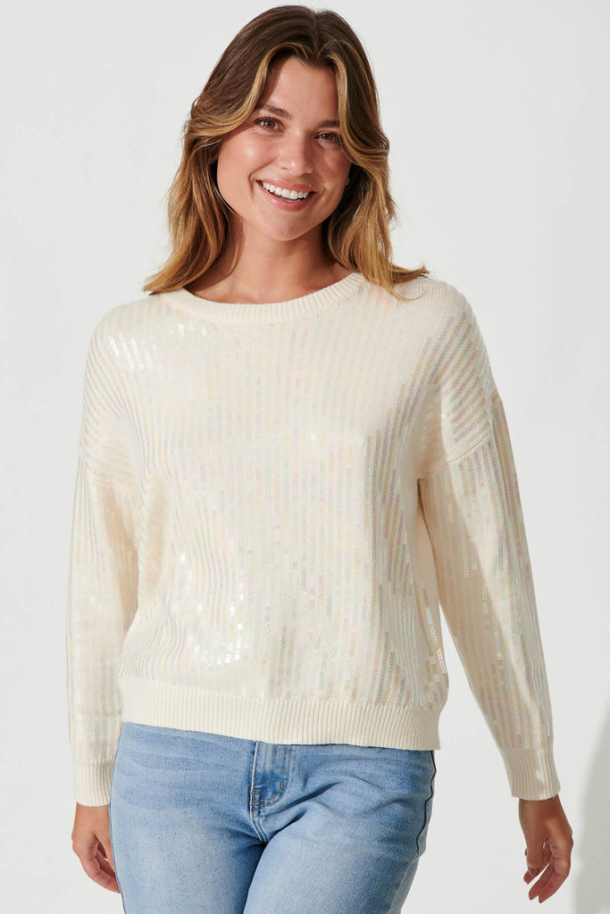 Jackson Knit In Cream Sequin Wool Blend