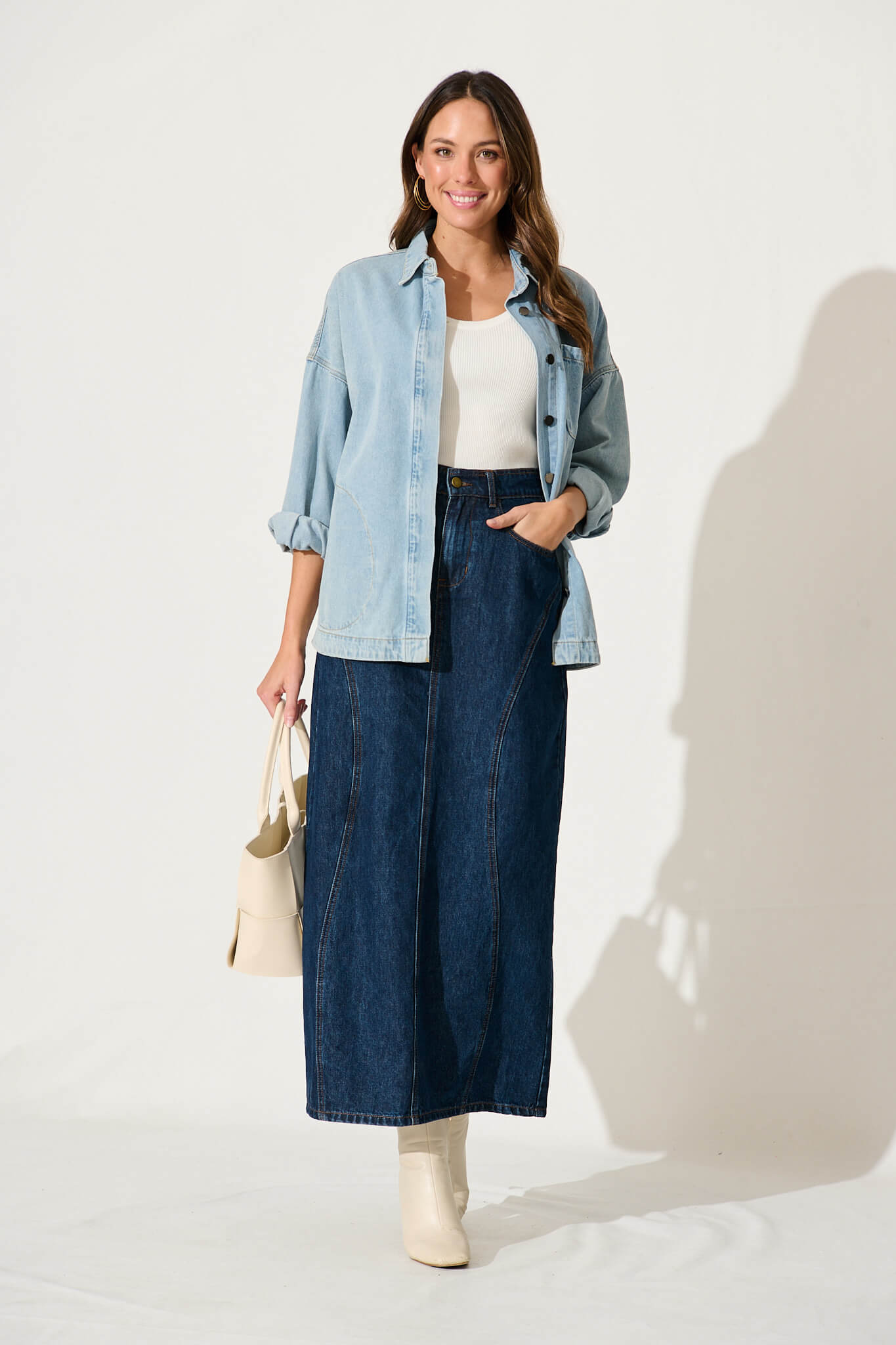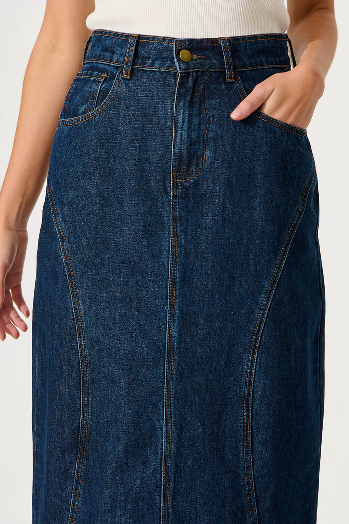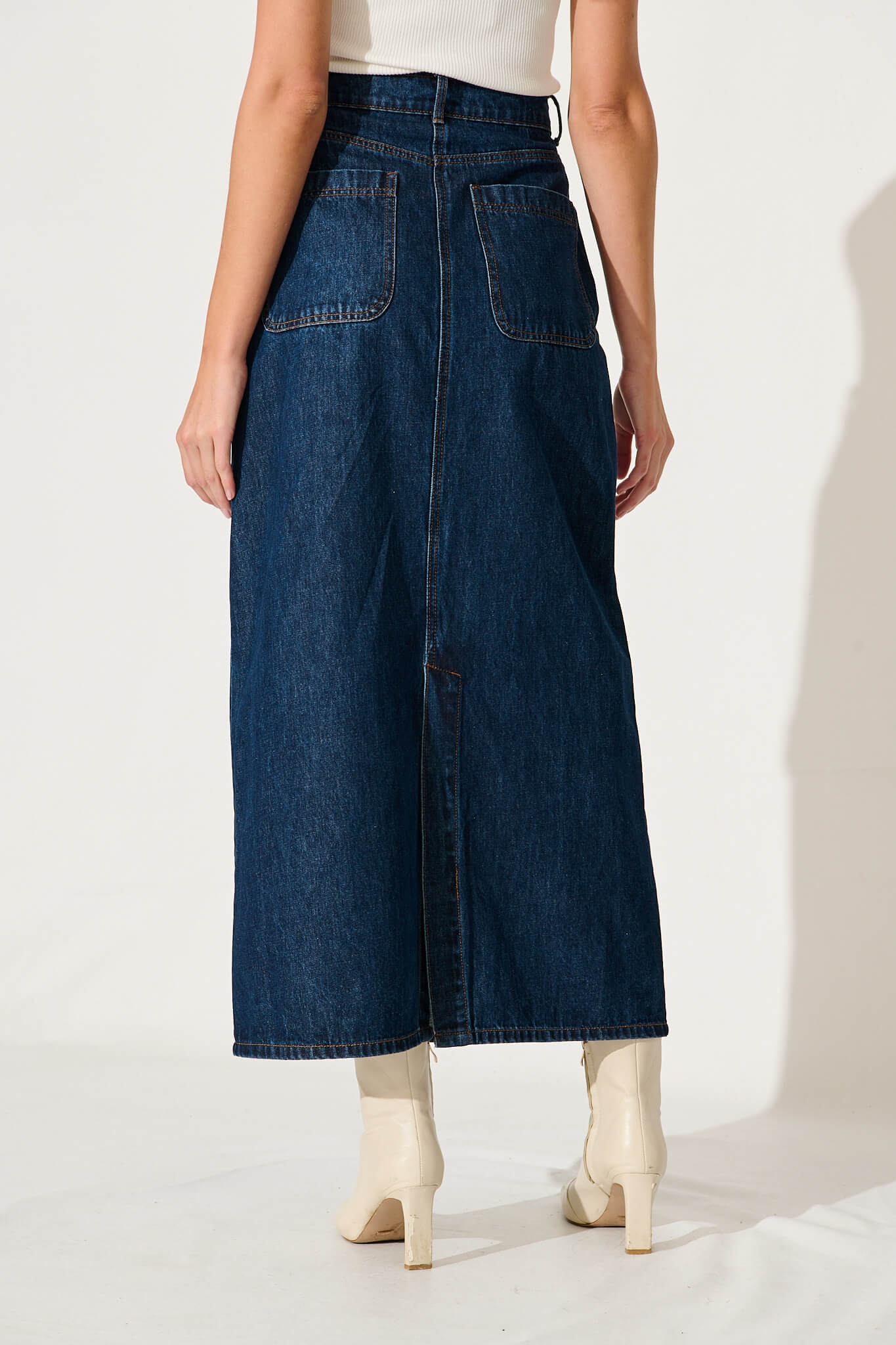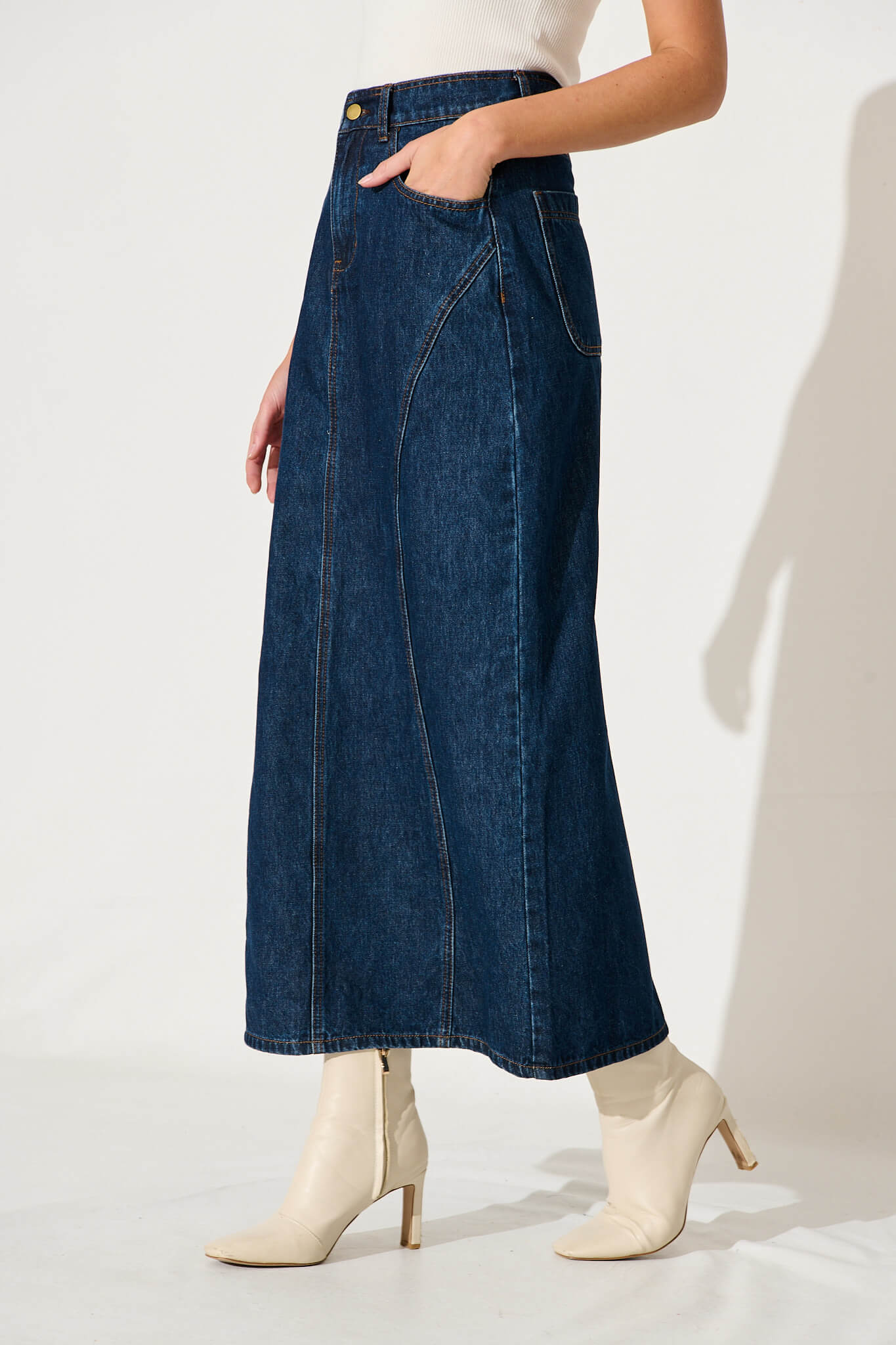 Jagger Maxi Denim Skirt In Dark Blue Wash