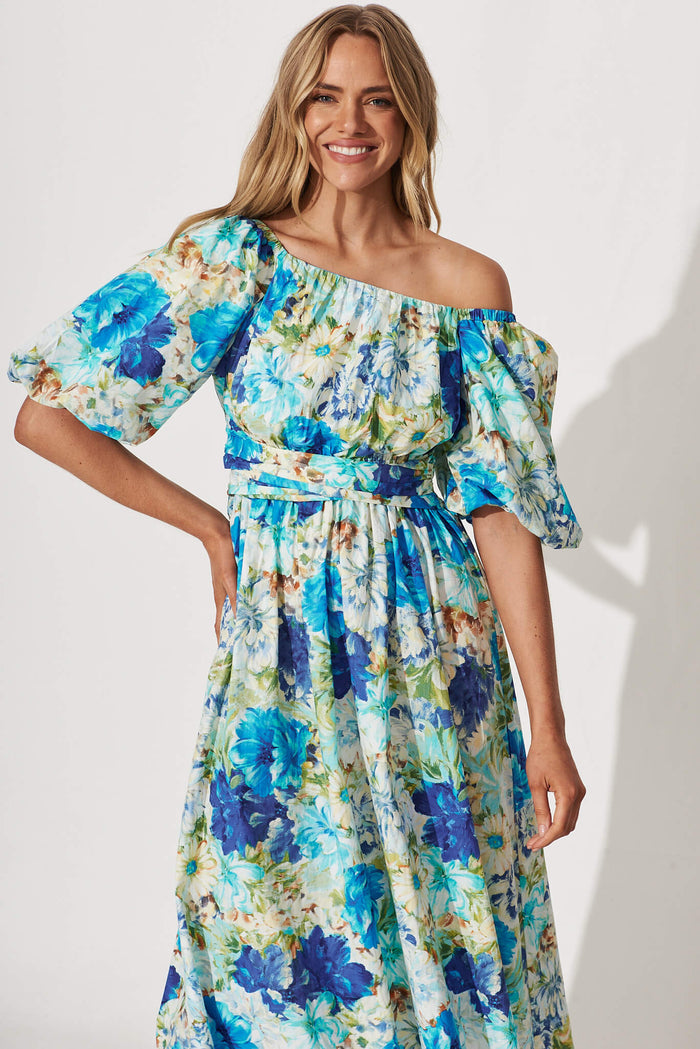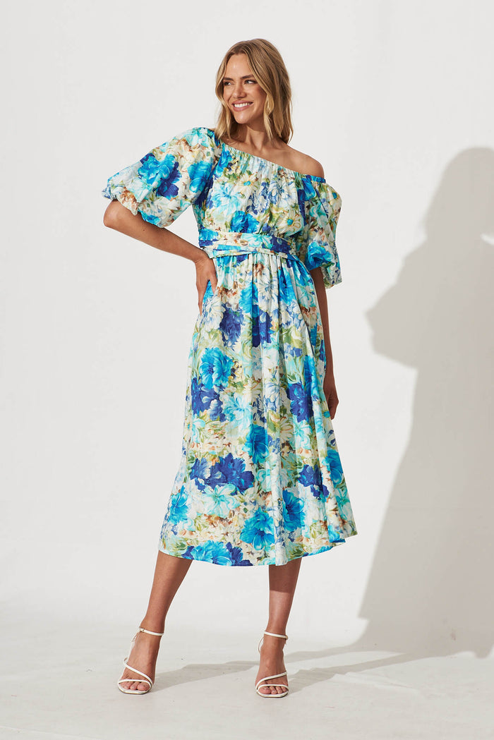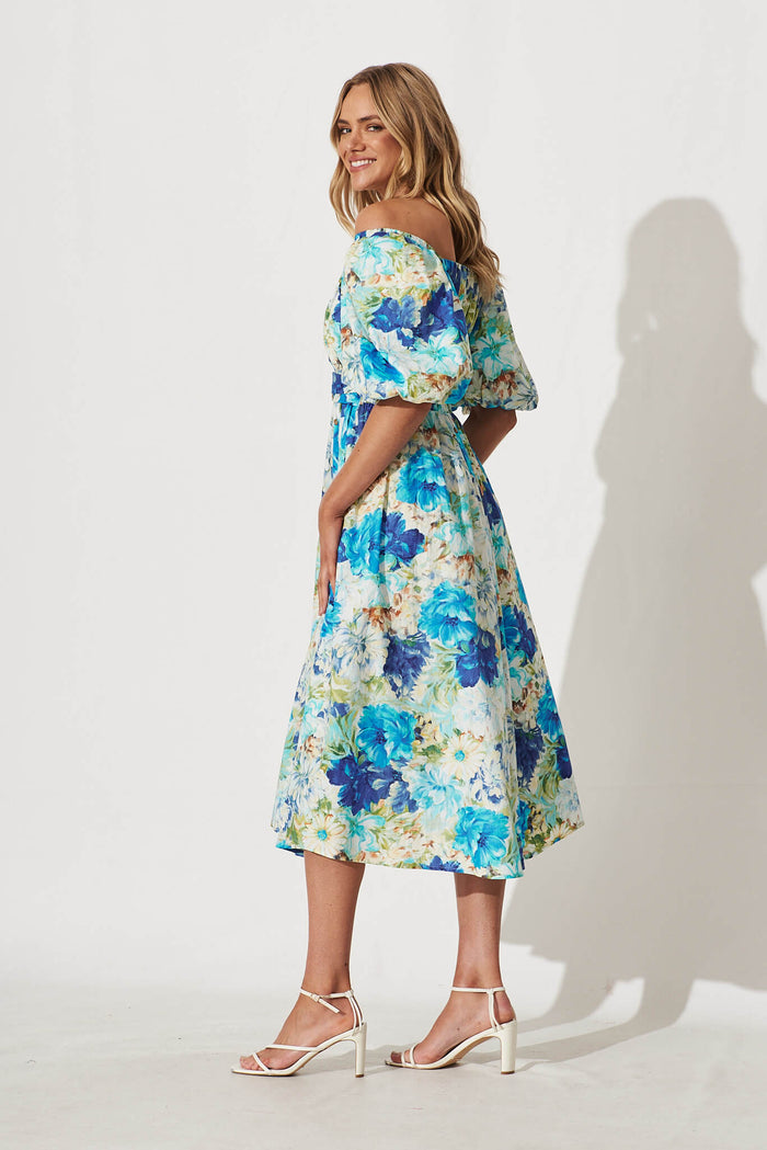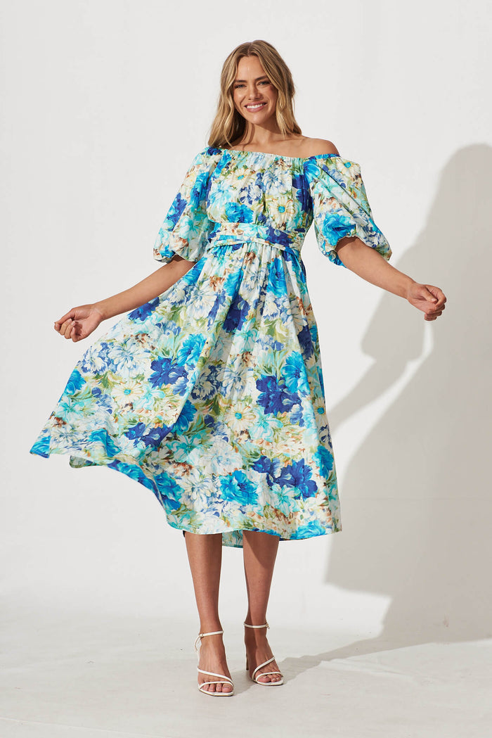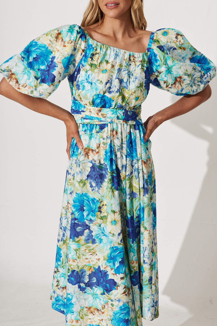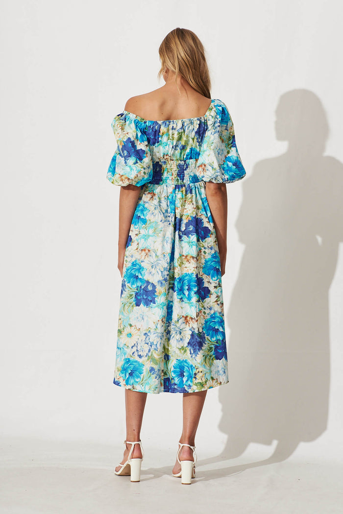 Jamilia Midi Dress In Blue Multi Floral Cotton